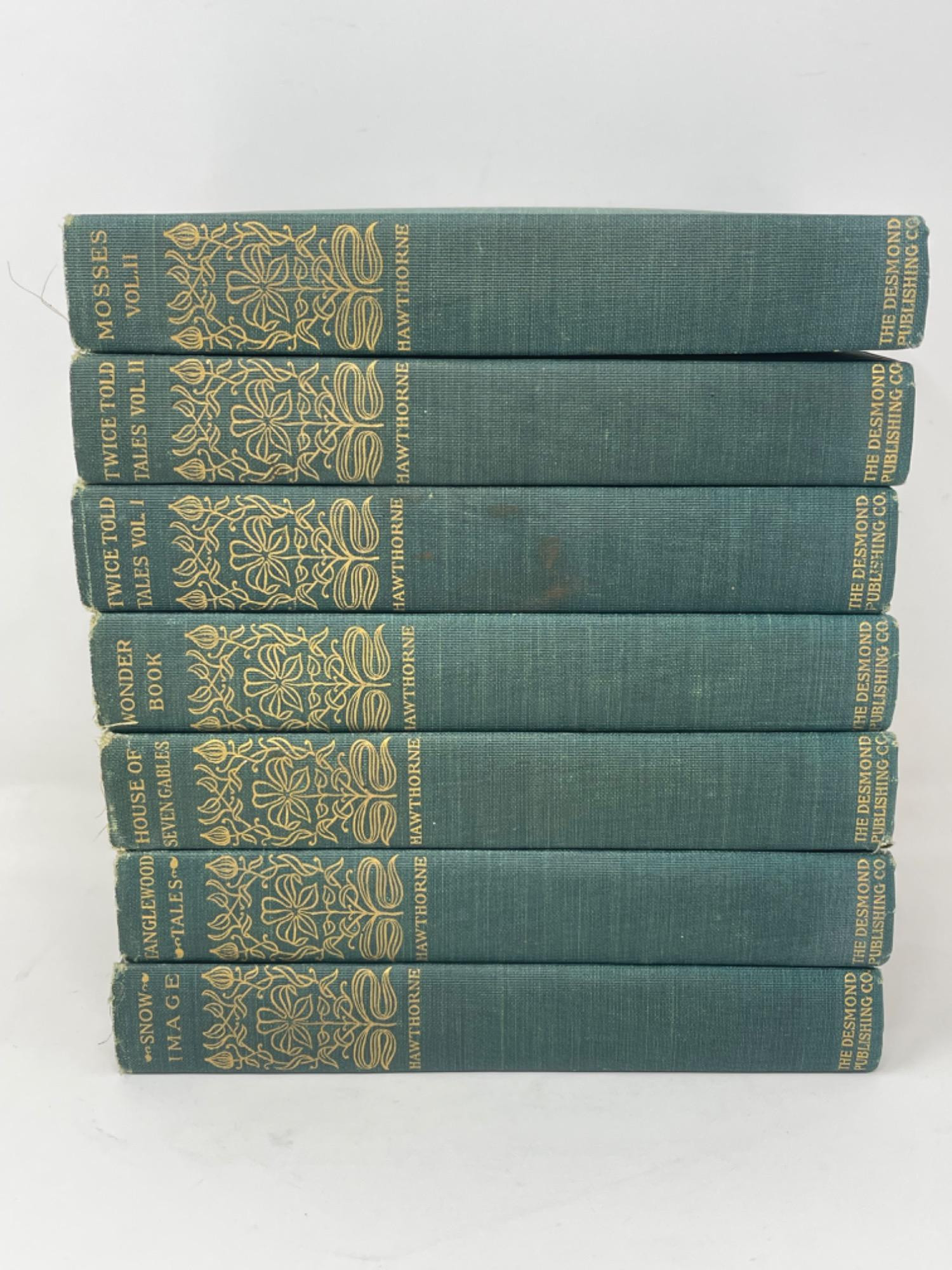 Antique Nathaniel Hawthorne Books - The Desmond Publishing Co. Copyright 1900 All in fragile condition, but holding together well. Some covers have minor staining as well. Please see photos for proper representation of quality.