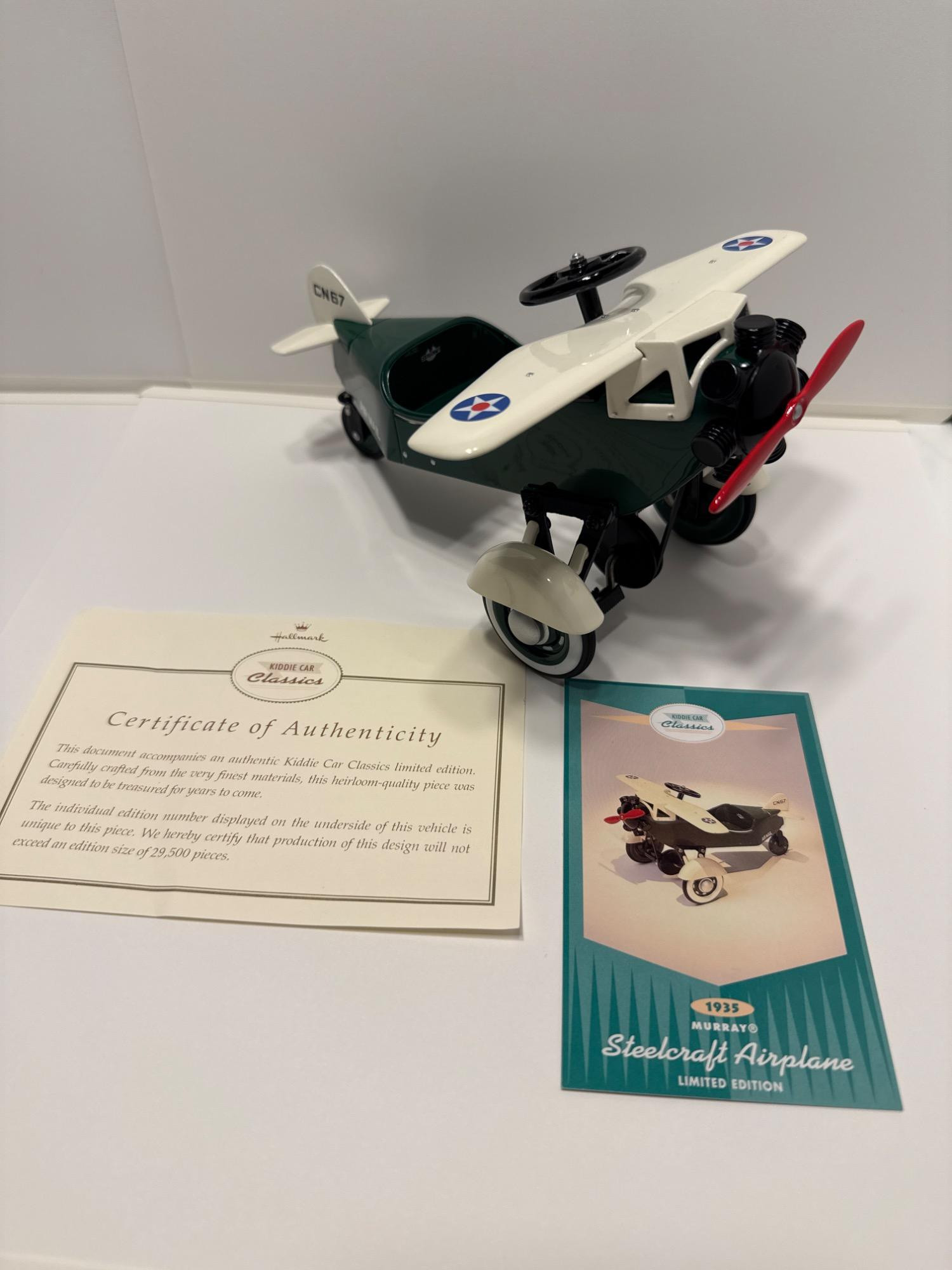 NIB- Original boxes. Certificate of authenticity and product card. Steelcraft airplane circa1935. Airmail decals. Great paint and attention to detail Moving parts and engraved trademark data.