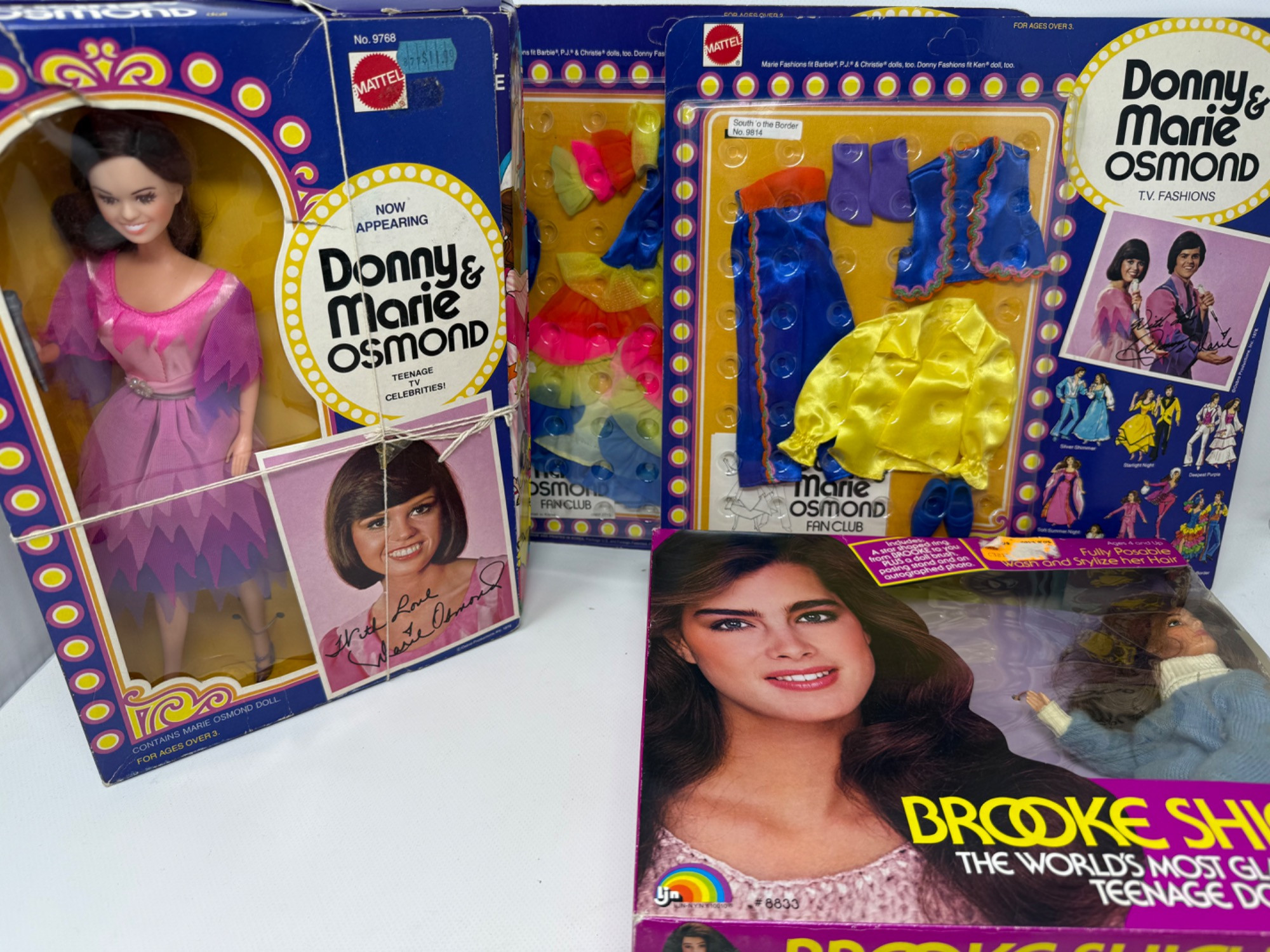 Vintage Brook Shields doll and singing siblings Donny and Marie Osmond. New items to include matching outfits.