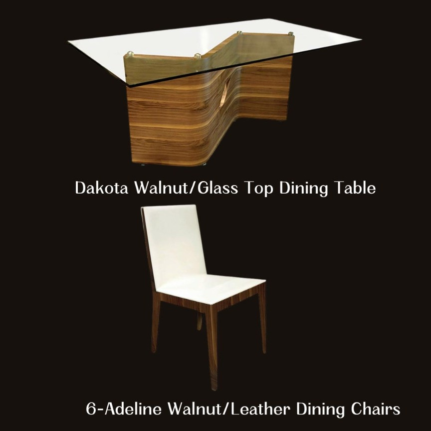 Lot # 1 - 6 Elegant Adeline Dining Chairs & Dakota Dining Glass/Walnut Table Set
