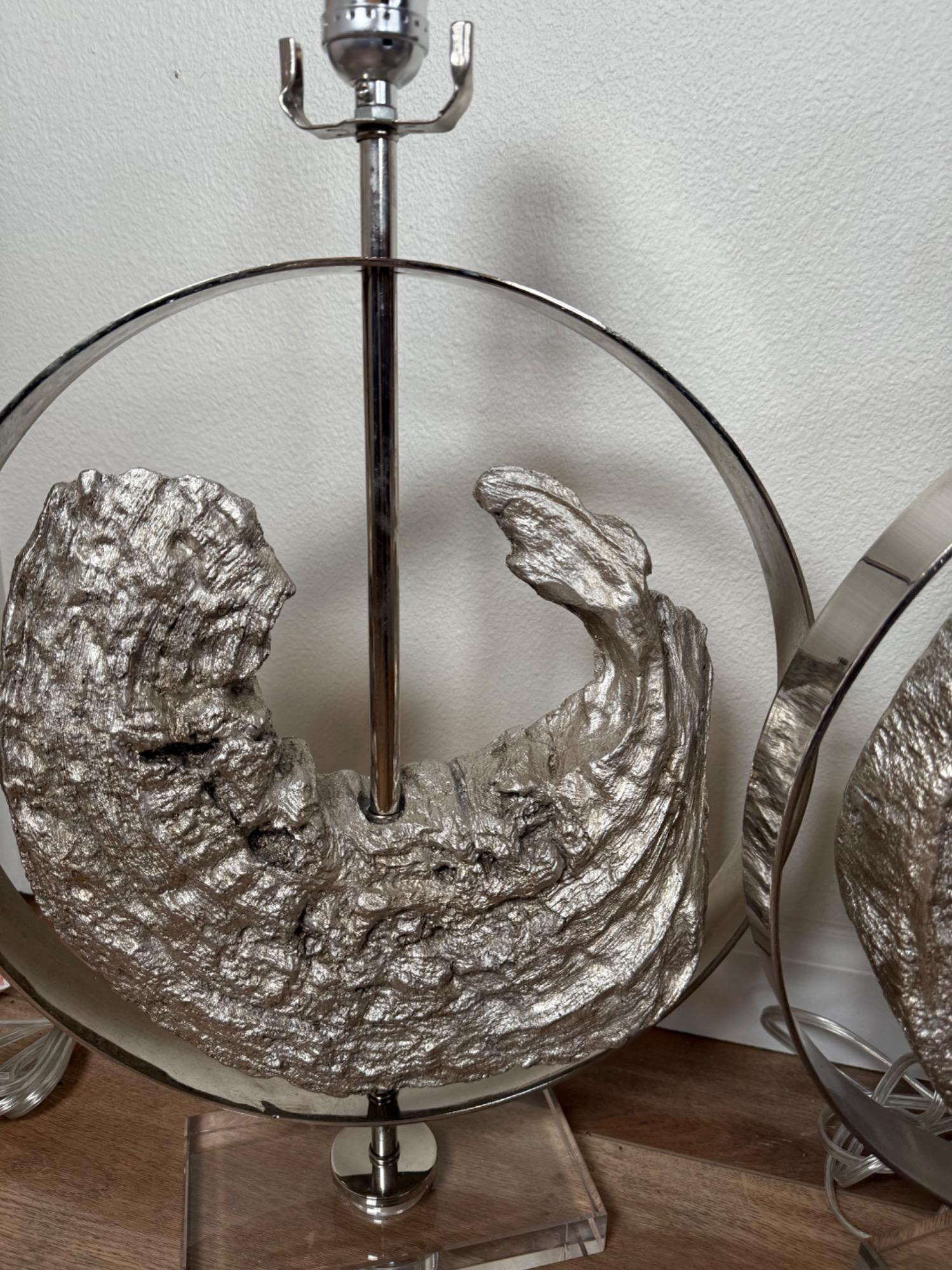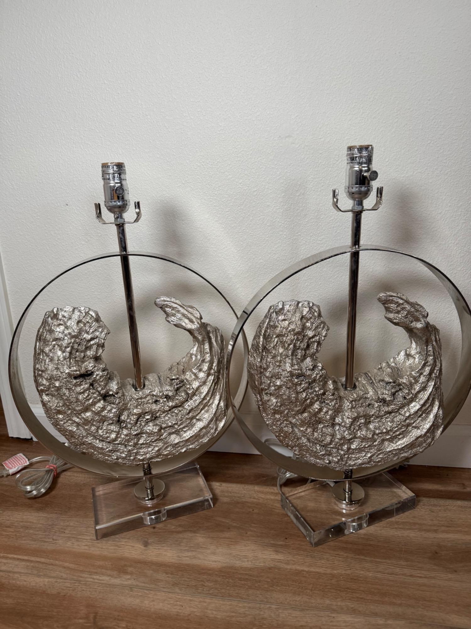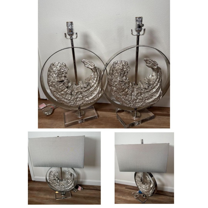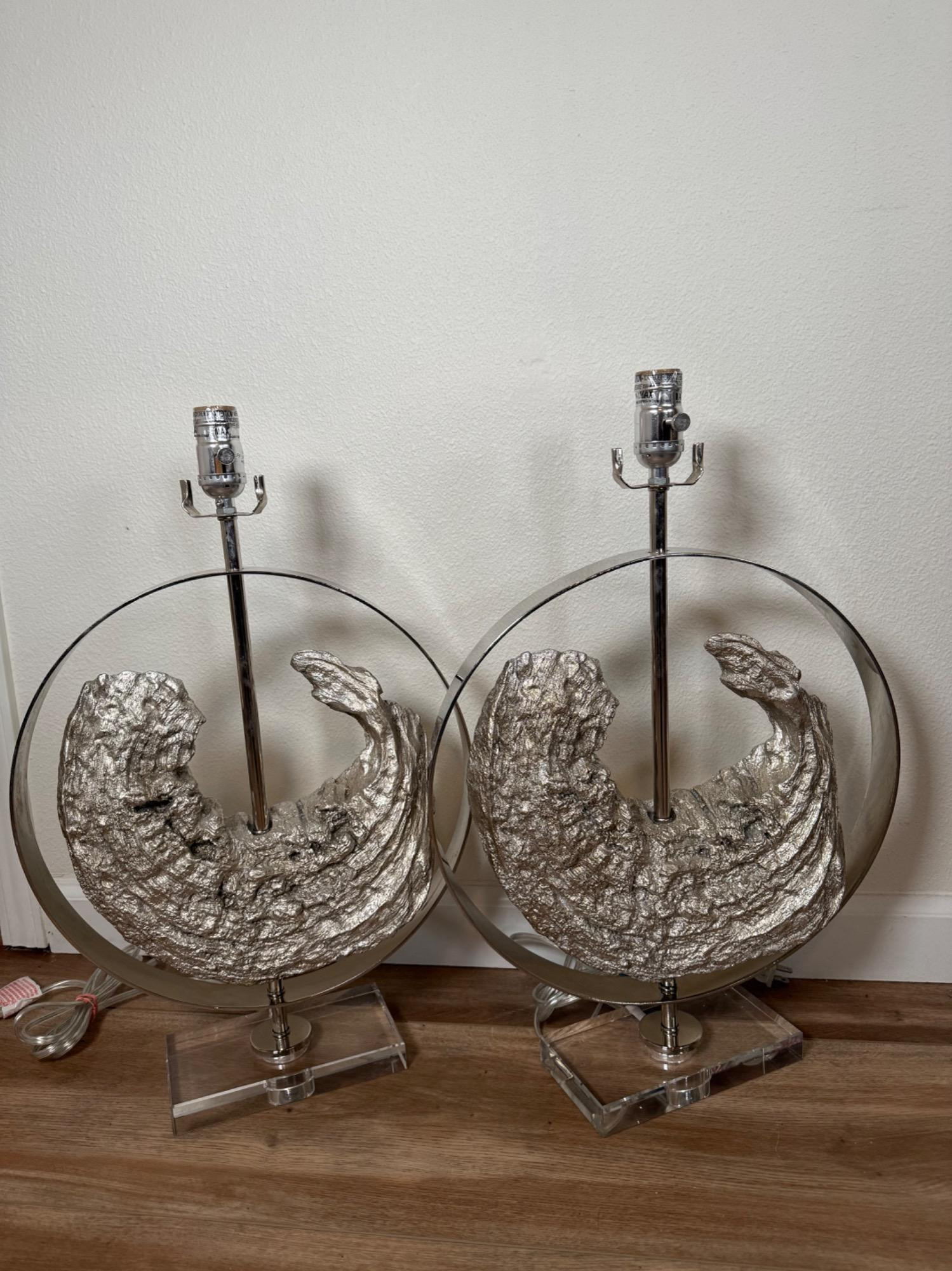 Pair of Mid Century Uttermost Ambler-Style Table Lamps This pair of Ambler-style table lamps features a modern and sculptural design with dimensions of 17 inches tall and 14.5 inches wide. Its contemporary aesthetic and clean lines make it perfect for elevating the look of your living space, bedroom, or office. These pieces combine style and functionality to enhance any décor. 29.5" Tall Very good condition.