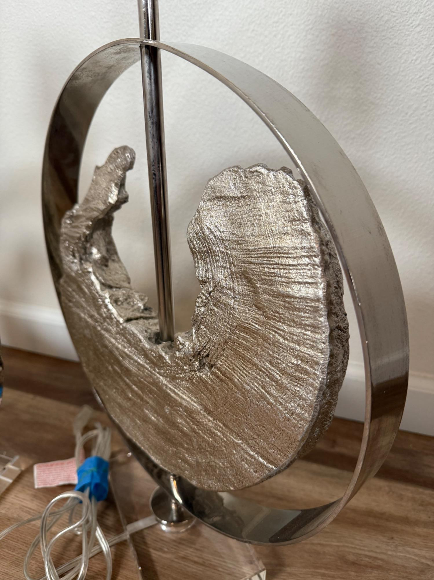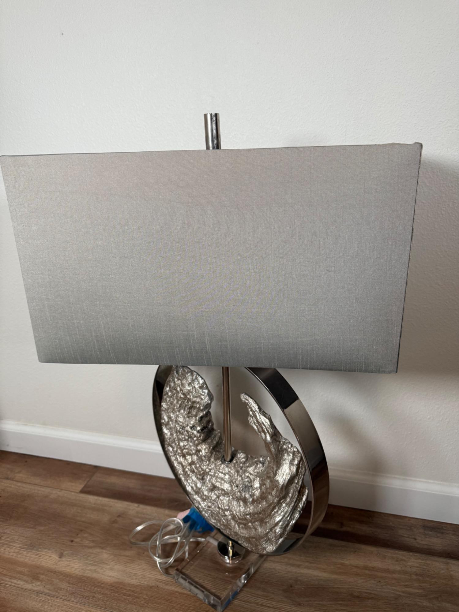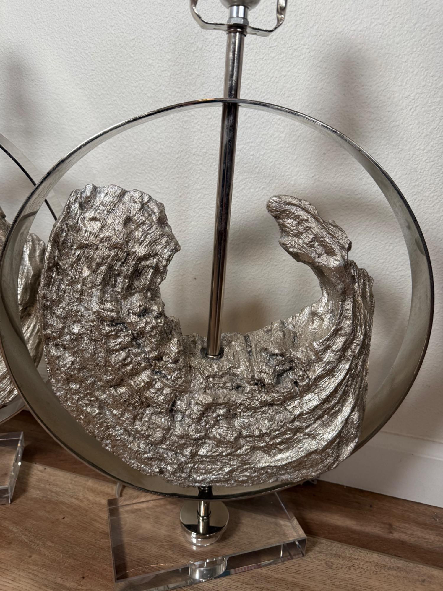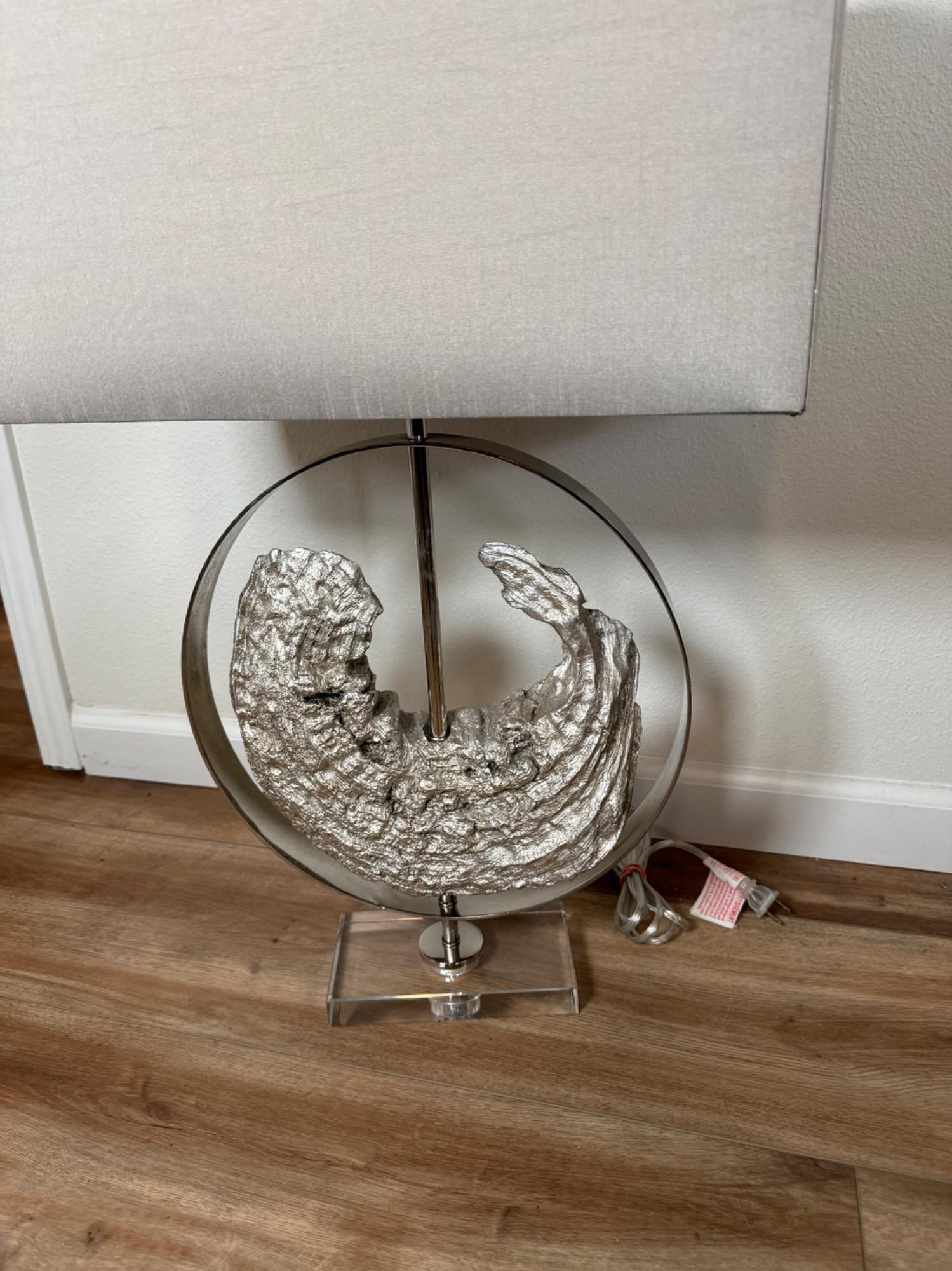 Pair of Mid Century Uttermost Ambler-Style Table Lamps This pair of Ambler-style table lamps features a modern and sculptural design with dimensions of 17 inches tall and 14.5 inches wide. Its contemporary aesthetic and clean lines make it perfect for elevating the look of your living space, bedroom, or office. These pieces combine style and functionality to enhance any décor. 29.5" Tall Very good condition.