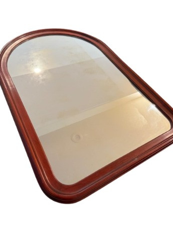 Elegant arched mirror measuring 35” tall by 23” wide, featuring a solid wood frame in good condition with a hearty, antique appearance. Bidding on this lot is an agreement that: (1.) You will have 2 capable, able-bodied persons to lift and load at a minimum. (2.) You will bring a hand truck and/or any other tools needed to remove this item. If these steps are not followed your item will be forfeited and no refund given.
