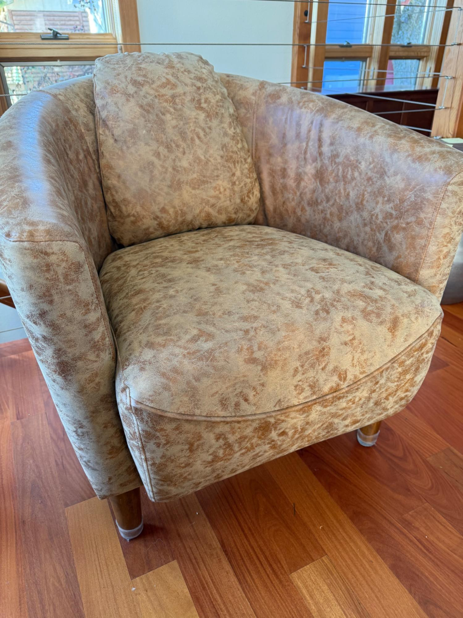 Lot # 63 - Faux Leather Tub Chair – Vintage Style Accent Chair