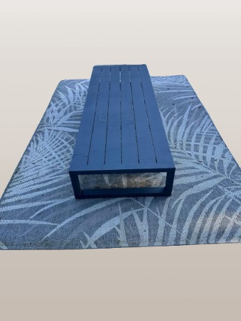 Enhance your outdoor living area with this sleek Restoration Hardware outdoor coffee table paired with a stylish outdoor area rug. Coffee Table Dimensions: 84.5" L x 29.5" W x 12" H Condition: Excellent condition, durable design perfect for outdoor use. The combination of modern design and functionality makes this a great addition to any patio or garden. The accompanying rug adds a complementary touch of elegance. Bidding on this lot is an agreement that: (1.) You will have 2 capable, able-bodied persons to lift and load at a minimum. (2.) You will bring a hand truck and/or any other tools needed to remove this item. If these steps are not followed your item will be forfeited and no refund given.