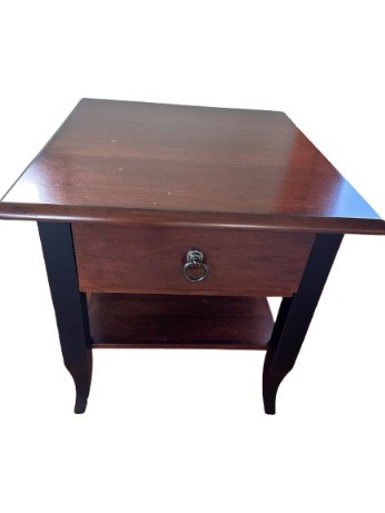 This traditional wood side table adds a touch of classic elegance to any space. Measurements: 27.5" D x 26" W x 26.5" Tall Features: Includes a single drawer with a stylish ring pull and a lower shelf for added storage or display. Condition: Excellent A timeless piece for your living room, bedroom, or office! Bidding on this lot is an agreement that: (1.) You will have 2 capable, able-bodied persons to lift and load at a minimum. (2.) You will bring a hand truck and/or any other tools needed to remove this item. If these steps are not followed your item will be forfeited and no refund given.