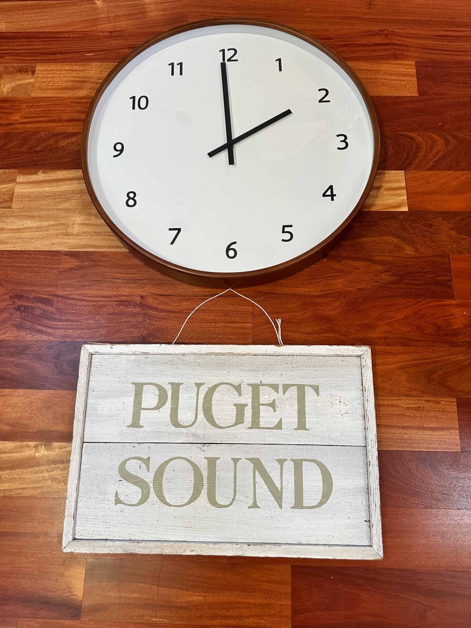 Lot # 82 - Wall Decor-Large Clock & Puget Sound Sign Set
