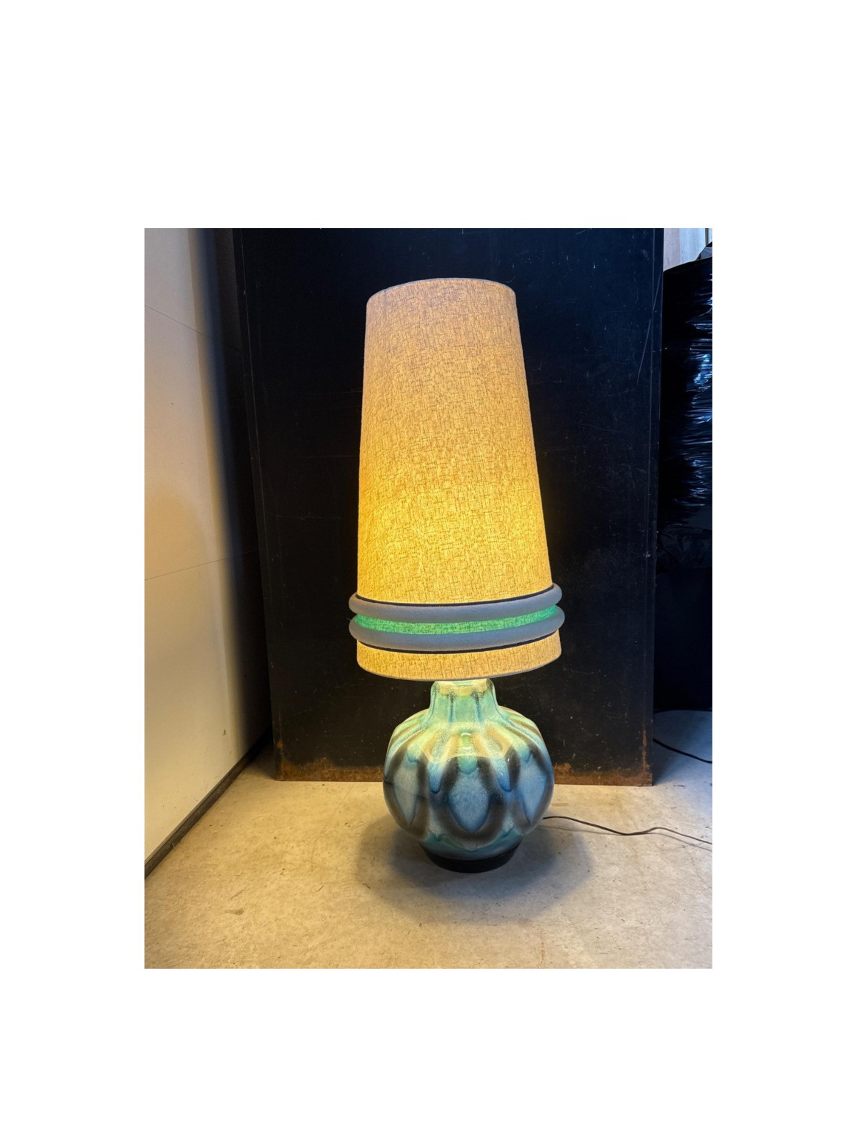 Striking MCM 41" Tall Ceramic Lamp- Original Shade! *great vintage condition