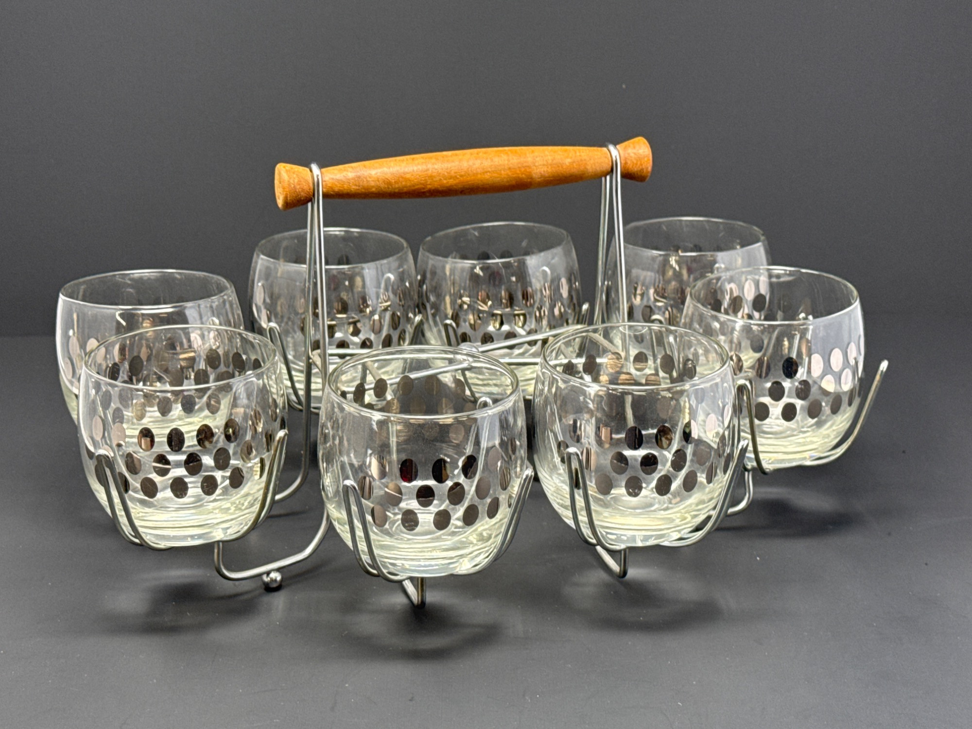 Lot # 106 - Vintage Roly Poly Glasses w/ Caddy- set 8