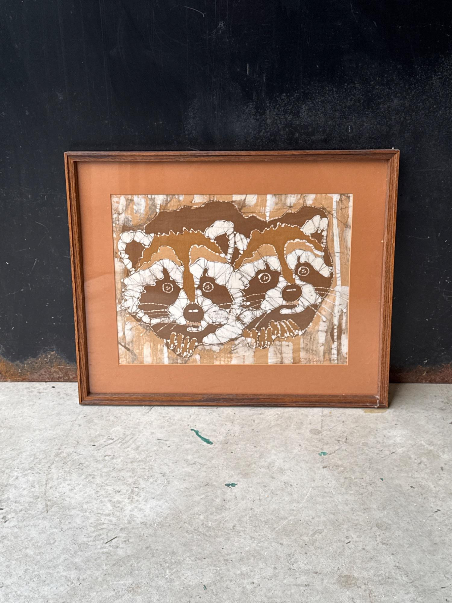 Lot # 152 - Vintage Batik Raccoon Art by Brian Munson *Tacoma Artist