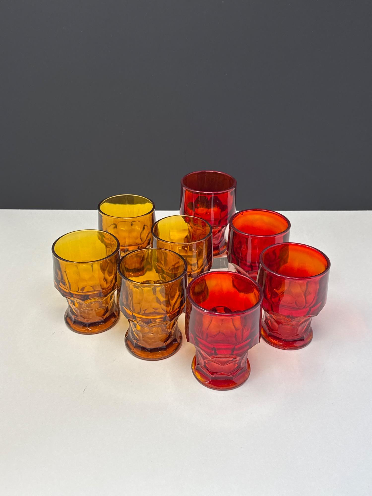 Vintage Anchor Hocking Amber & Ruby Tumblers- Set 8 Juice glass size