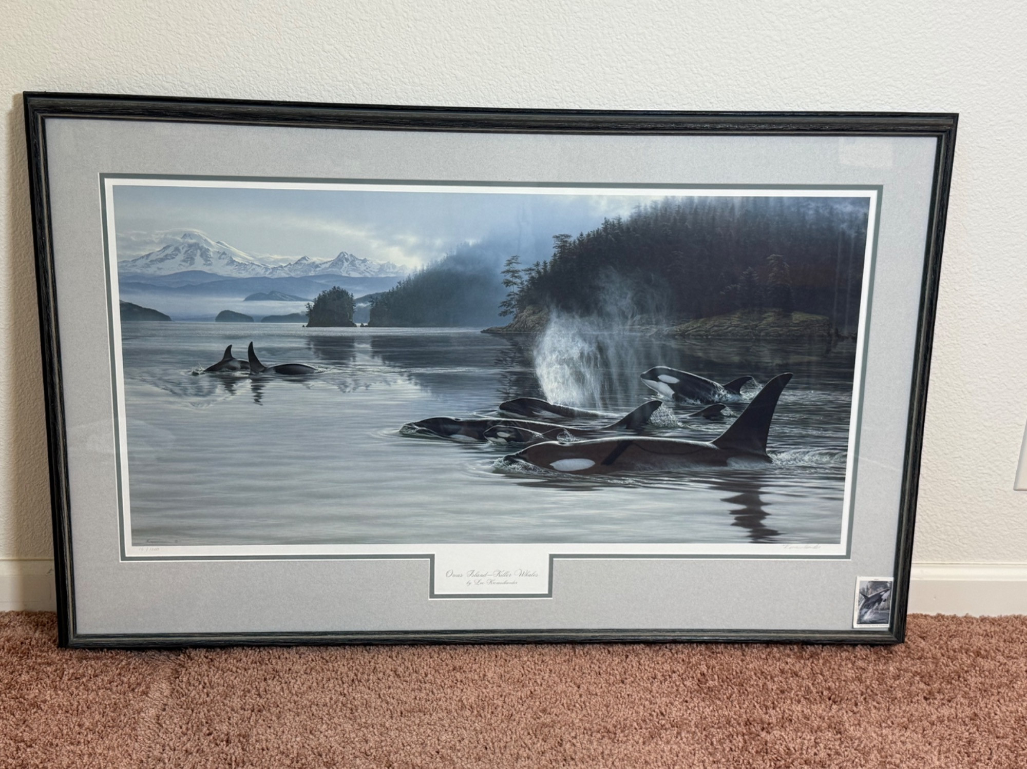 Artist Lee Kromschroeder print is signed and numbered. Number 16/1200 Titled: Orcas Island-killer Whales