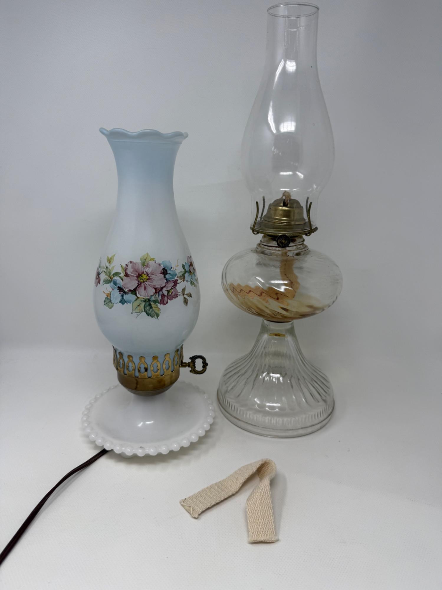 Lot # 69 - Two Hurricane Lamps-One Hand Painted Electric Lamp