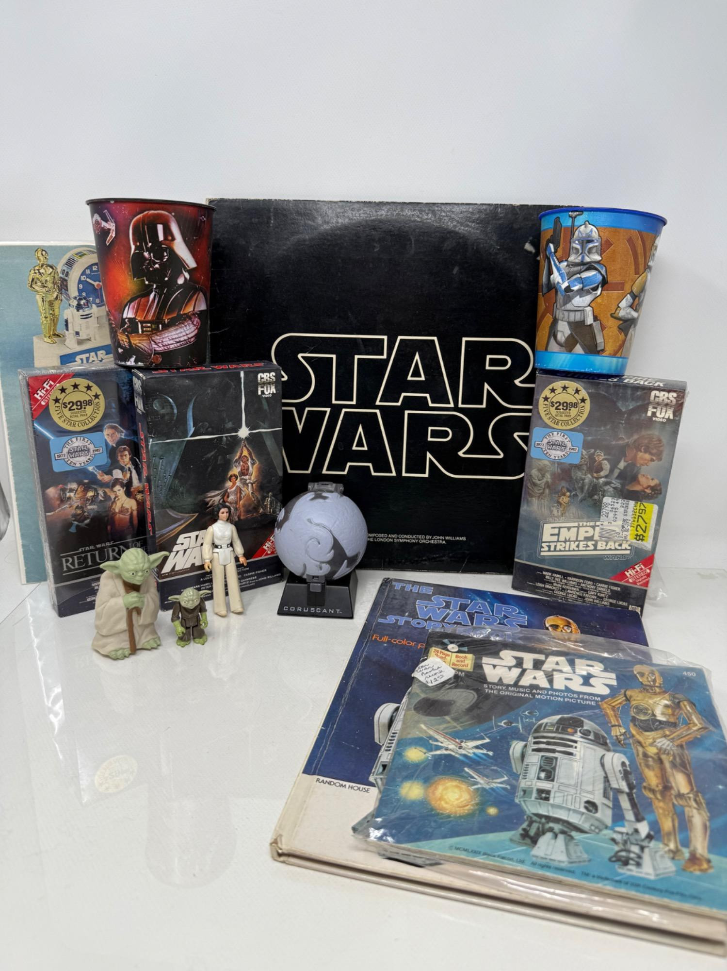Step back in time to the era of original Star Wars collectibles. Soundtrack album, VHS, Book and collectibles.