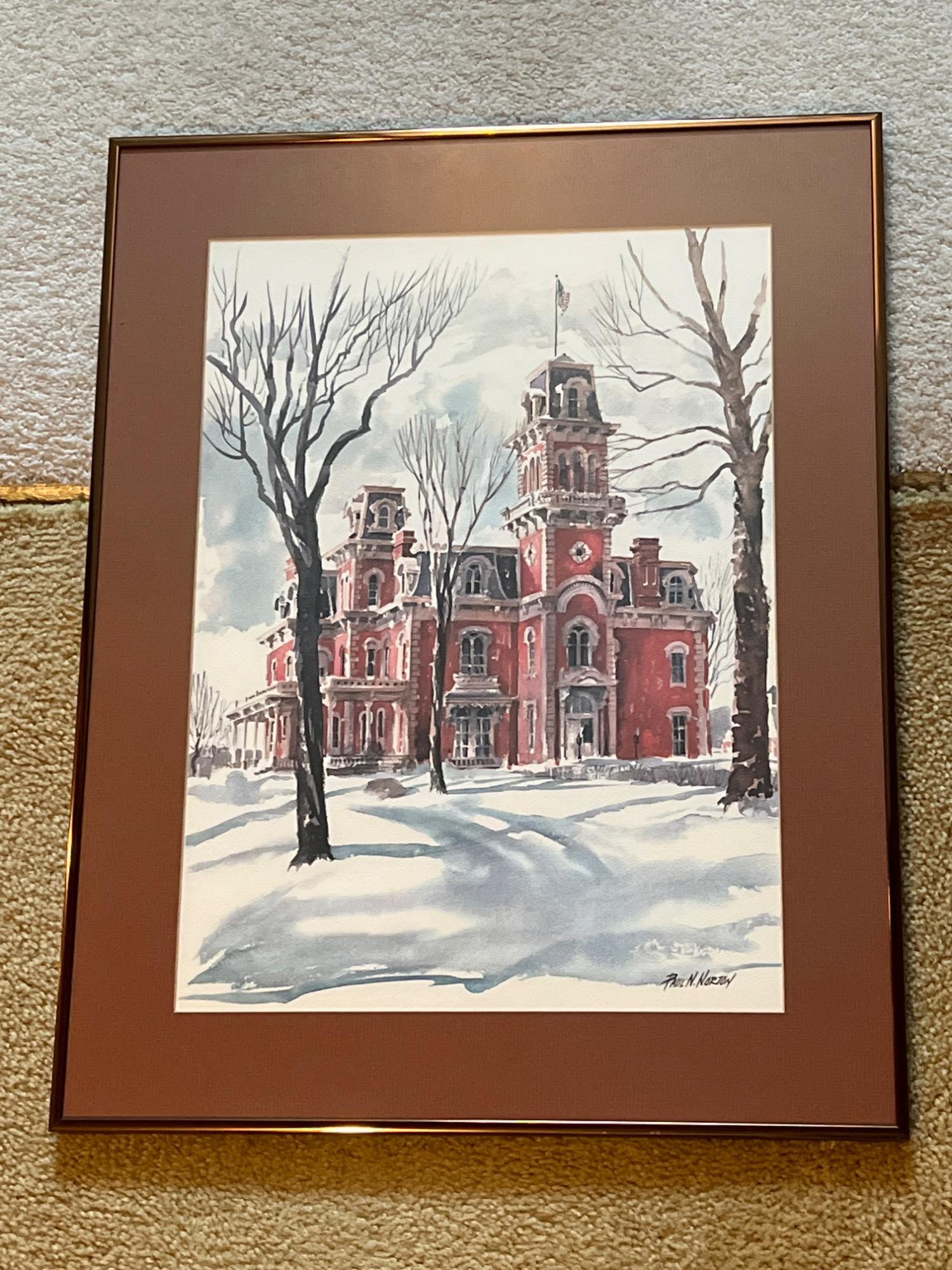 Framed lithograph of "Terrace Hill" governor's mansion in Des Moines, Iowa. Signed - Paul Norton.