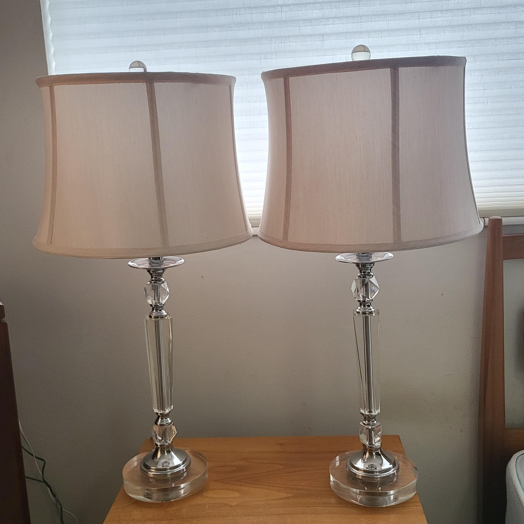 Sturdy glass construction with polished chrome. Both are in working condition.