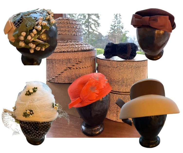 Several mid century hats and storage boxes.
