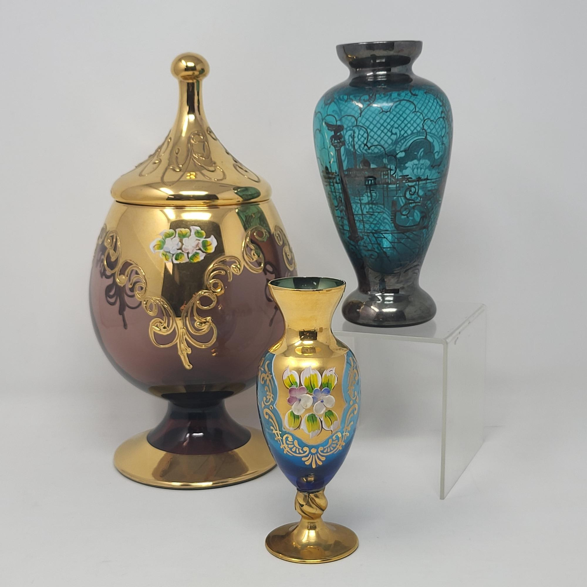 Lot # 118 - Venetian Amethyst Footed Glass Jar and Holy Grail MORE