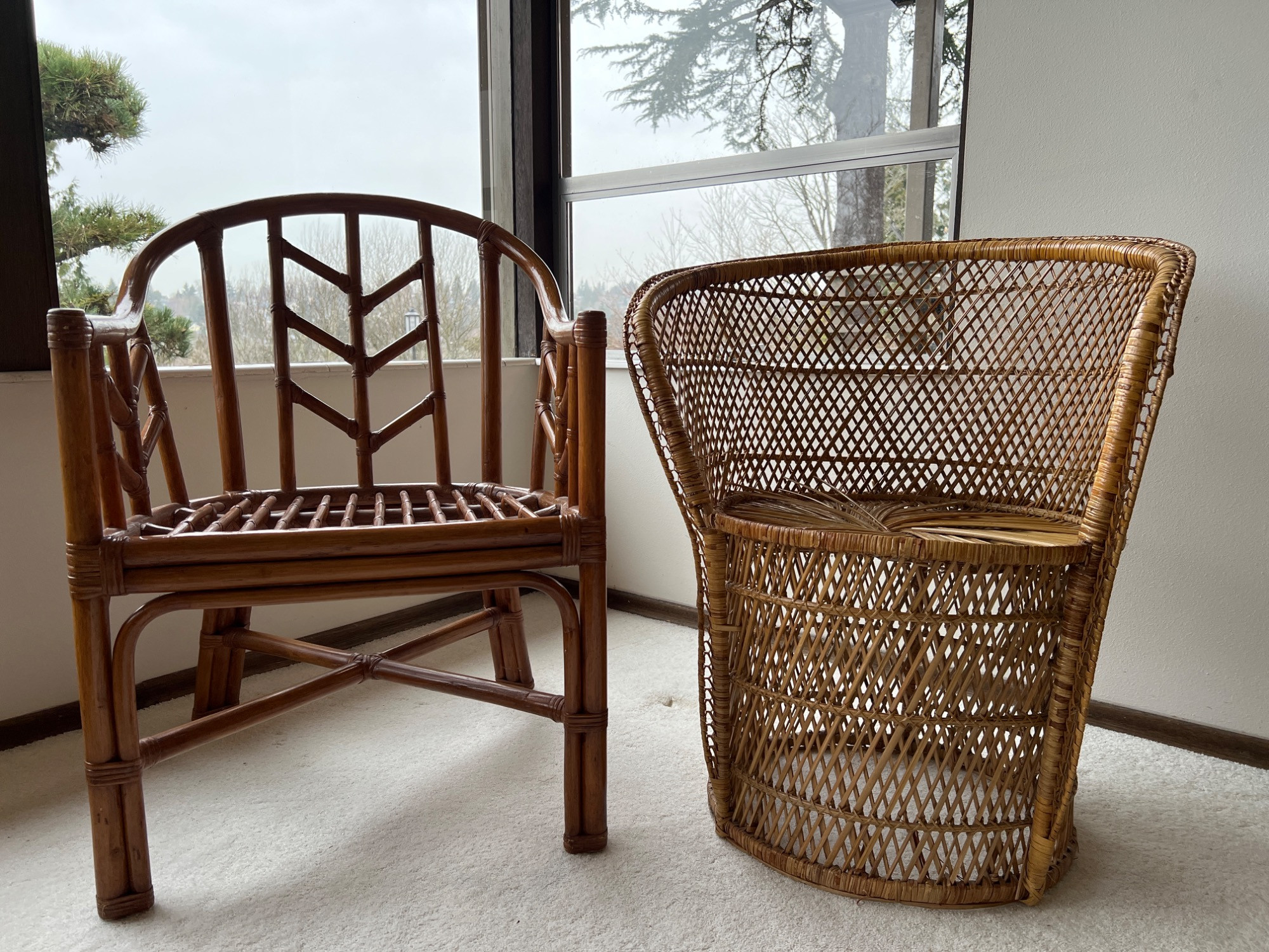 Lot # 151 - Bamboo Arrowback Chair & Wicker Bucket Chair