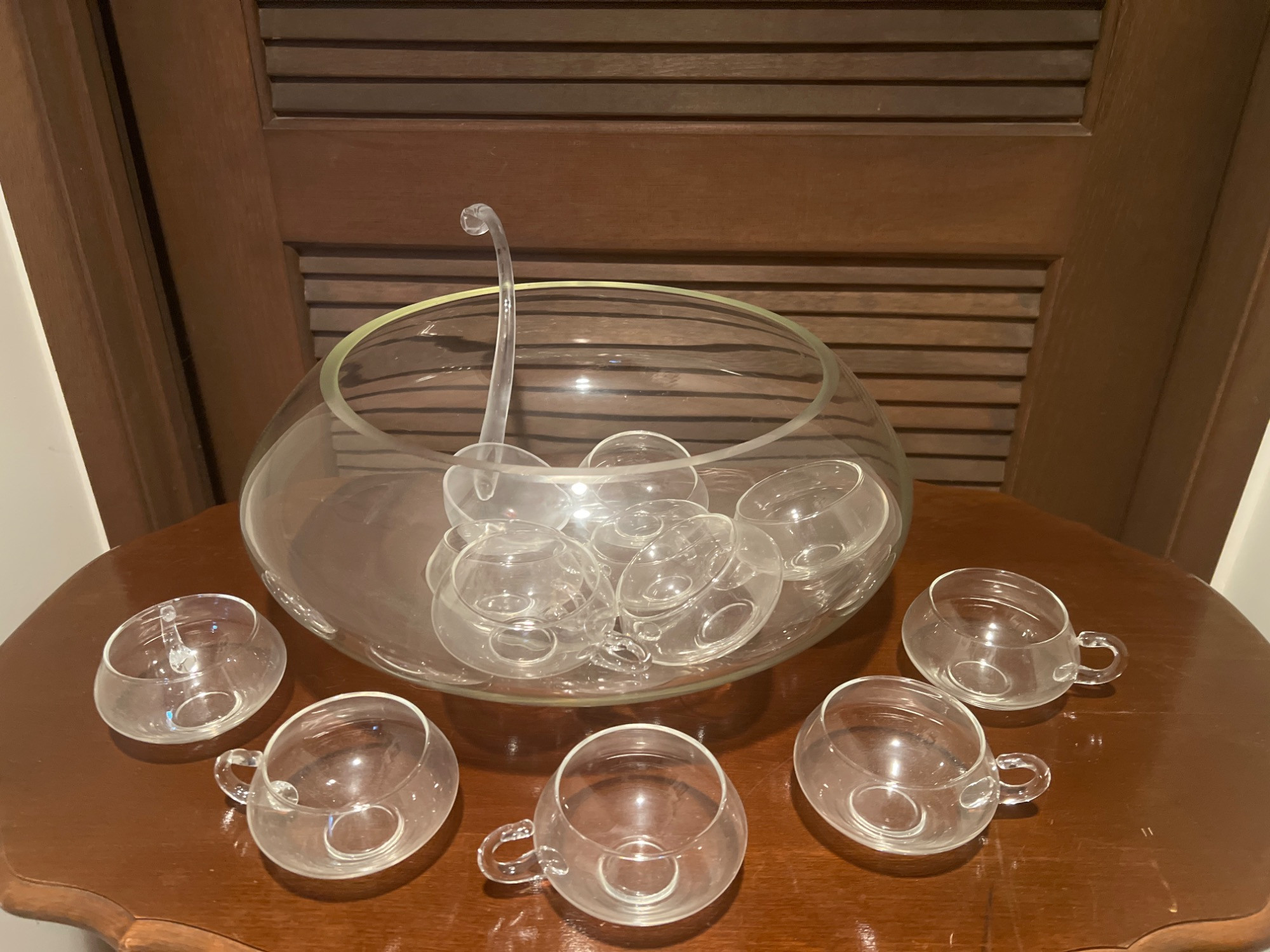 Lot # 187 - Reikes Mid Century Modern Handblown Glass Punchbowl & Cups