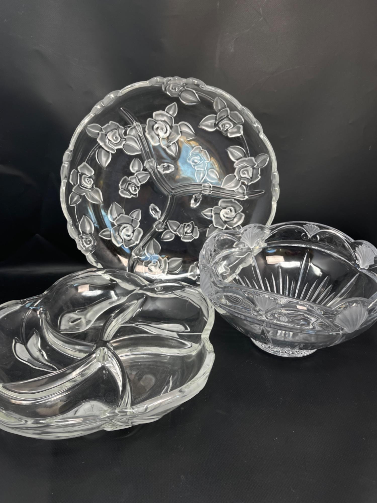 Lot # 52 - Vintage Glass Serving Dishes w/ Frosted Details