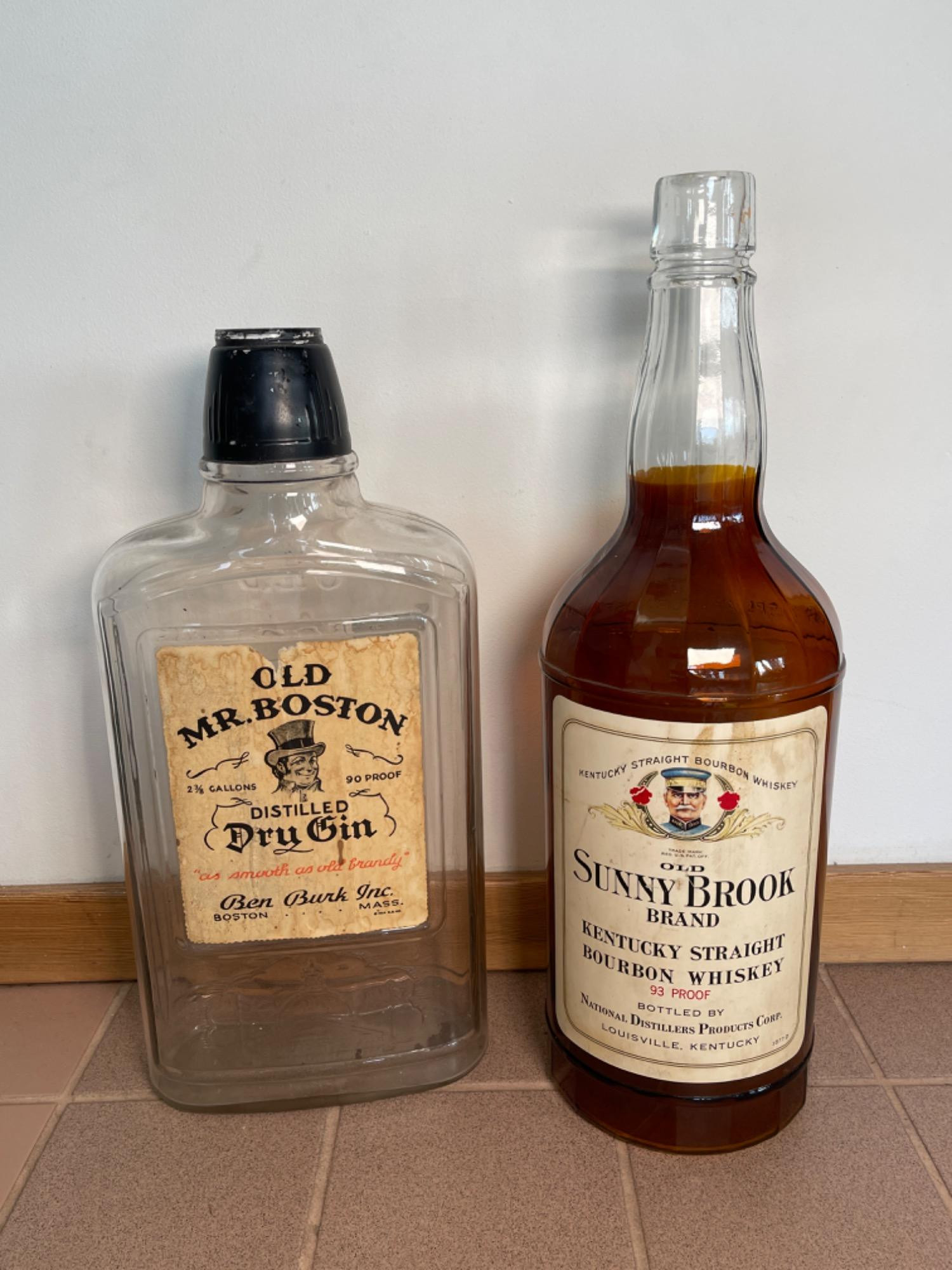 Lot # 69 - LARGE EMPTY Vintage Alcohol Bottles-Old Mr. Boston + Sunny Brook