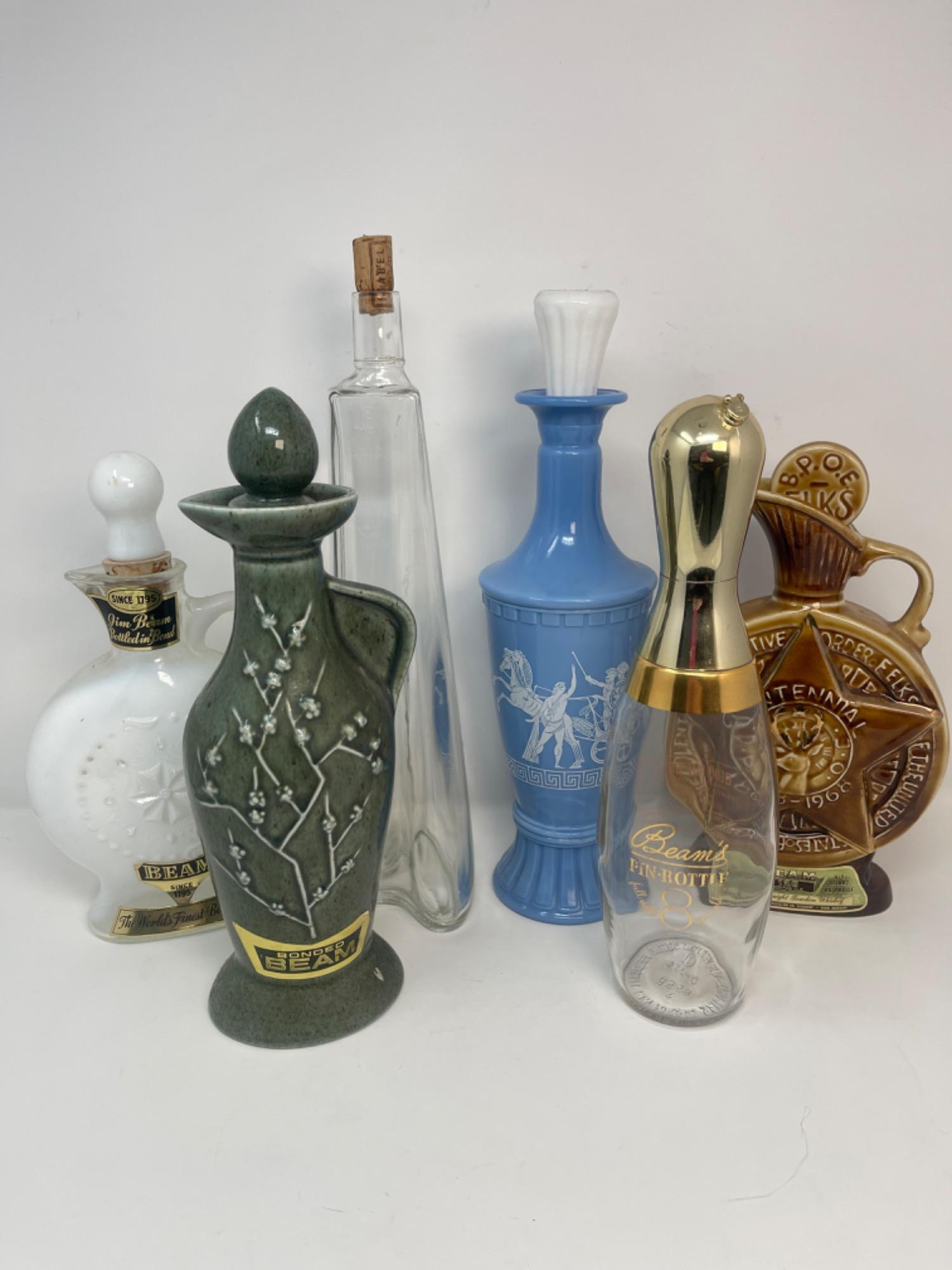 Vintage Empty Jim Beam Decanter Collection – 1960 Grecian, BPOE Elks, Royal Opal & More This collection features a variety of vintage Jim Beam decanters and collectible liquor bottles, ranging in height from 10.5 to 15 inches. Each piece showcases unique designs and historical significance, including: These bottles feature classic mid-century designs, embossed details, and original stoppers, making them perfect for Jim Beam collectors, barware enthusiasts, or vintage décor lovers. All have wearing off to design and labels. Please see photos.