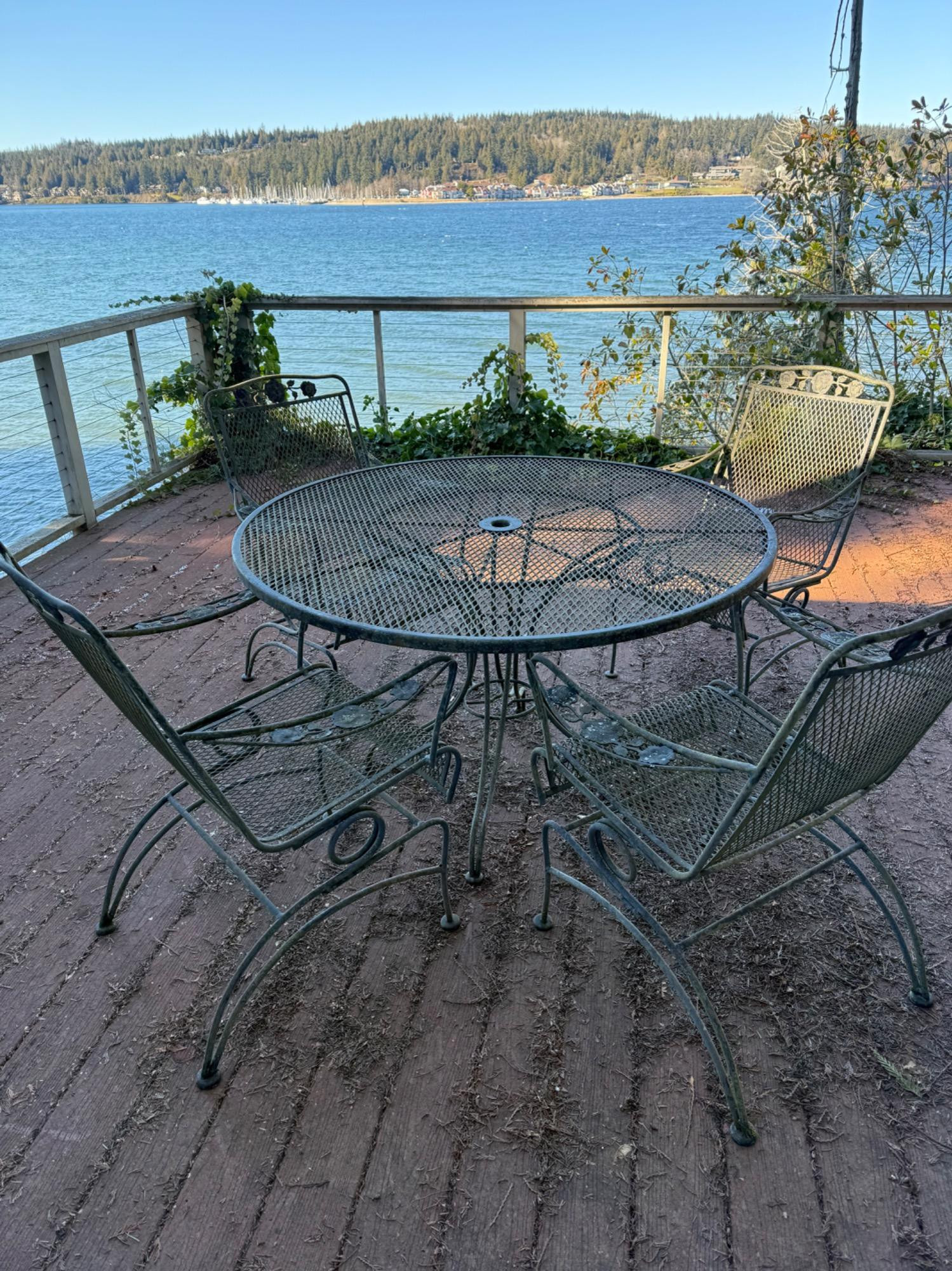Vintage Russell Woodard Wrought Iron Patio Set – Table & 4 Barrel Armchairs (Circa 1960s). This Russell Woodard wrought iron patio set, circa 1960s, is a timeless and highly sought-after addition to any outdoor space, garden, or patio. The set includes a 48-inch round mesh table (30 inches high) with a center umbrella hole and four barrel-style armchairs, known for their curved elegance and durable craftsmanship. Constructed from heavy-duty wrought iron, this patio set is built to withstand the elements while maintaining its mid-century charm. The open mesh design ensures quick drying and provides a light, airy aesthetic, making it perfect for alfresco dining or relaxing in style. Woodard furniture is known for its quality and longevity, making this set a collector’s piece as well as a functional outdoor essential. Bidding on this lot is an agreement that: (1.) You will have 2 capable, able-bodied persons to lift and load at a minimum. (2.) You will bring a hand truck and/or any other tools needed to remove this item. If these steps are not followed your item will be forfeited and no refund given.