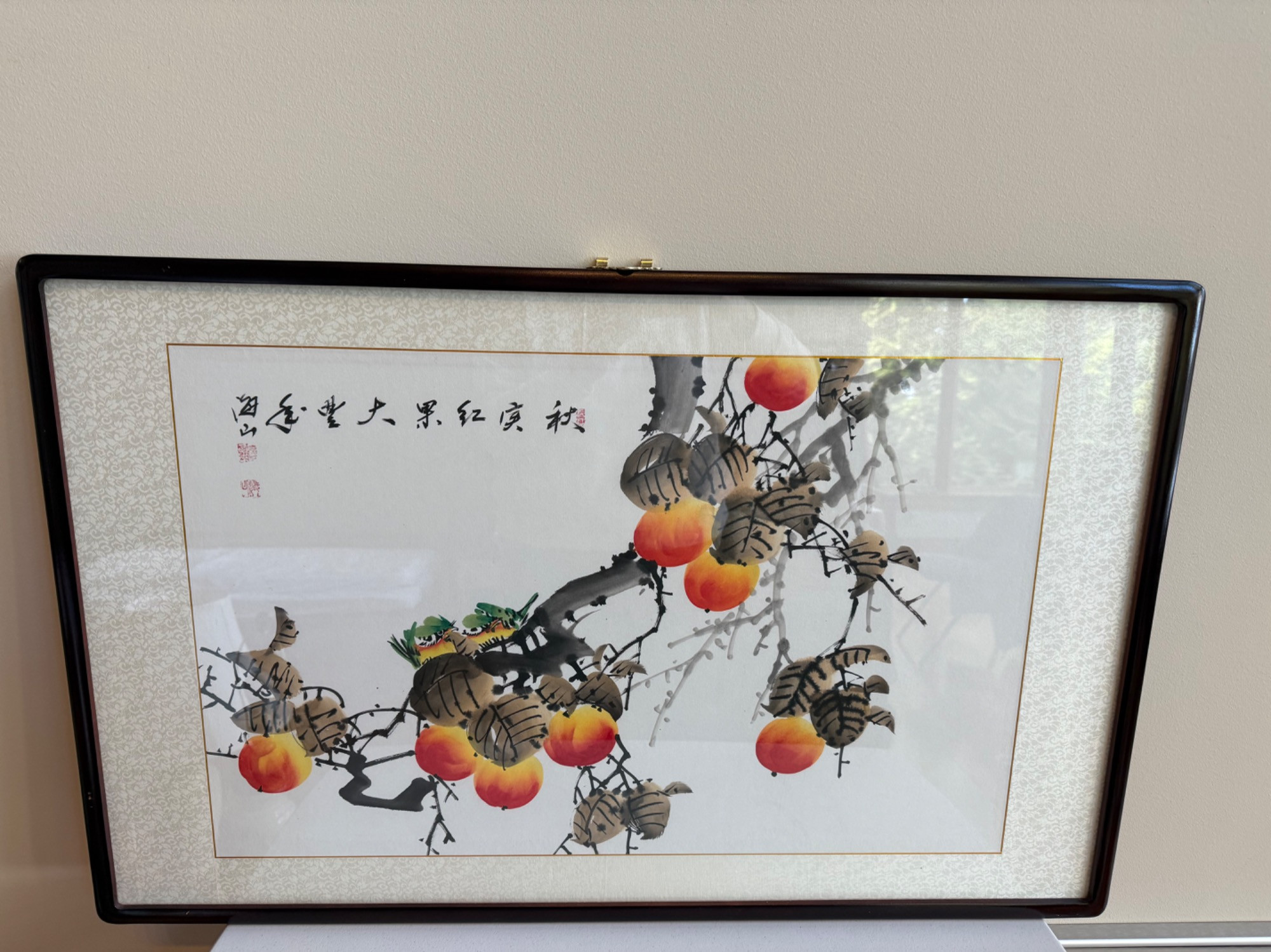 Lot # 27 - Framed Japanese Peach Watercolor Artwork – Elegant Asian Art