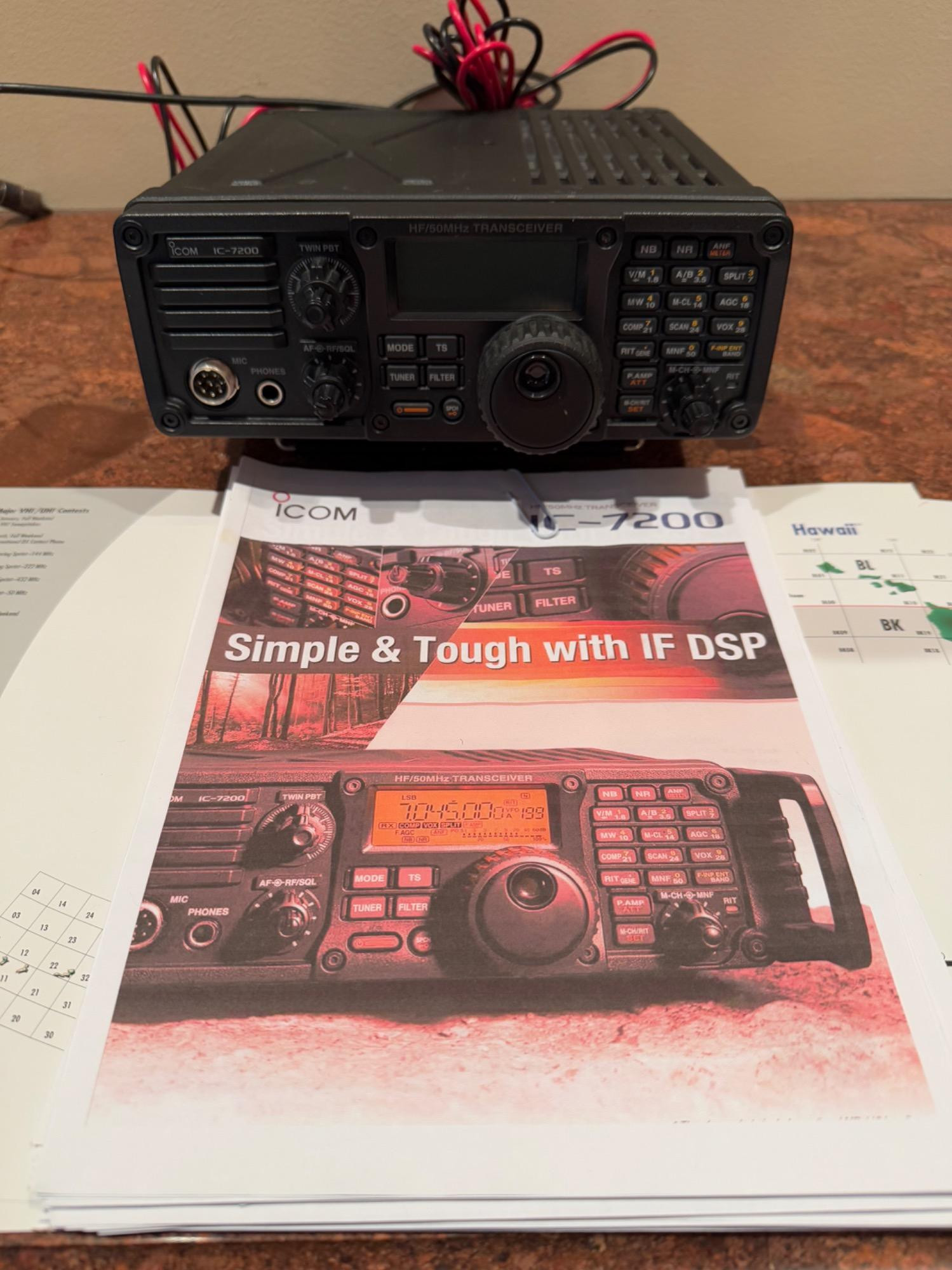 Icom IC-7200 HF/50MHz Transceiver – Box & Manual Included. This Icom IC-7200 HF/50MHz transceiver is a rugged and reliable ham radio designed for serious operators. It features IF DSP filtering, twin passband tuning, and noise reduction, making it ideal for clear and stable communication across various HF bands. The radio is built for durability with a tough, water-resistant design, perfect for both base station and field use. Included in this lot are the original box, user manual, and additional documents such as a U.S. Amateur Radio Band Plan and Grid Square Map. The unit shows signs of use but appears to be in good condition. Please Note: The Ham radio equipment has been well maintained. We have firsthand information that all the electronics were running and in satisfactory condition, HOWEVER WE DID NOT TEST ANY OF THE EQUIPMENT. We do not offer refunds, you are buying used equipment and ALL bids start at $5.00.