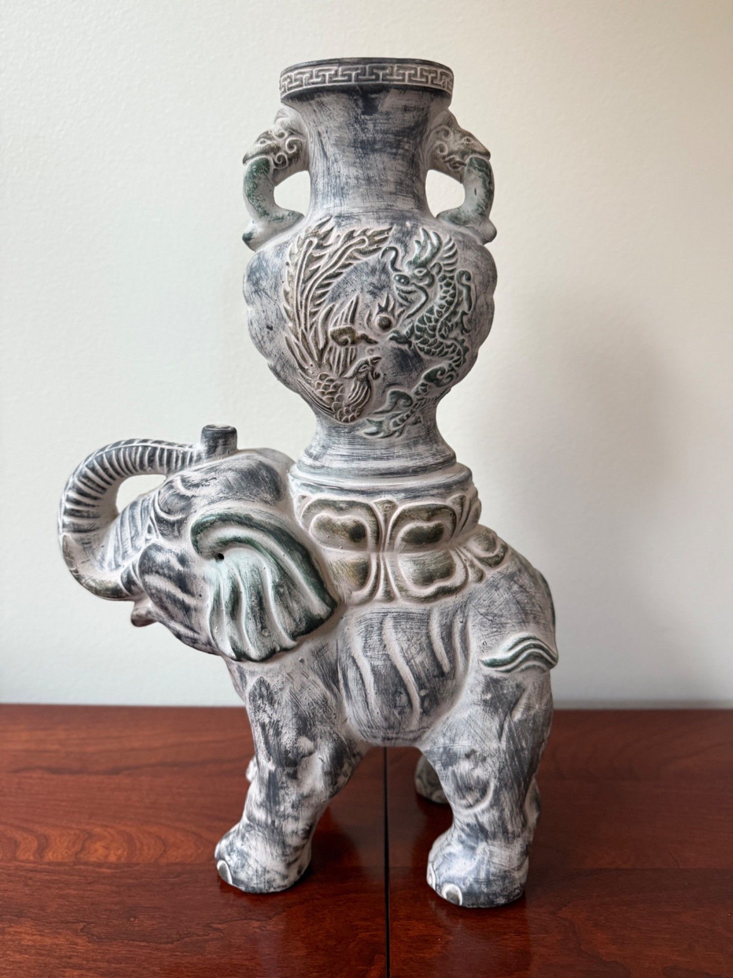 Lot # 121 - Elephant & Dragon Motif Vase – Asian-Inspired Ceramic Sculpture