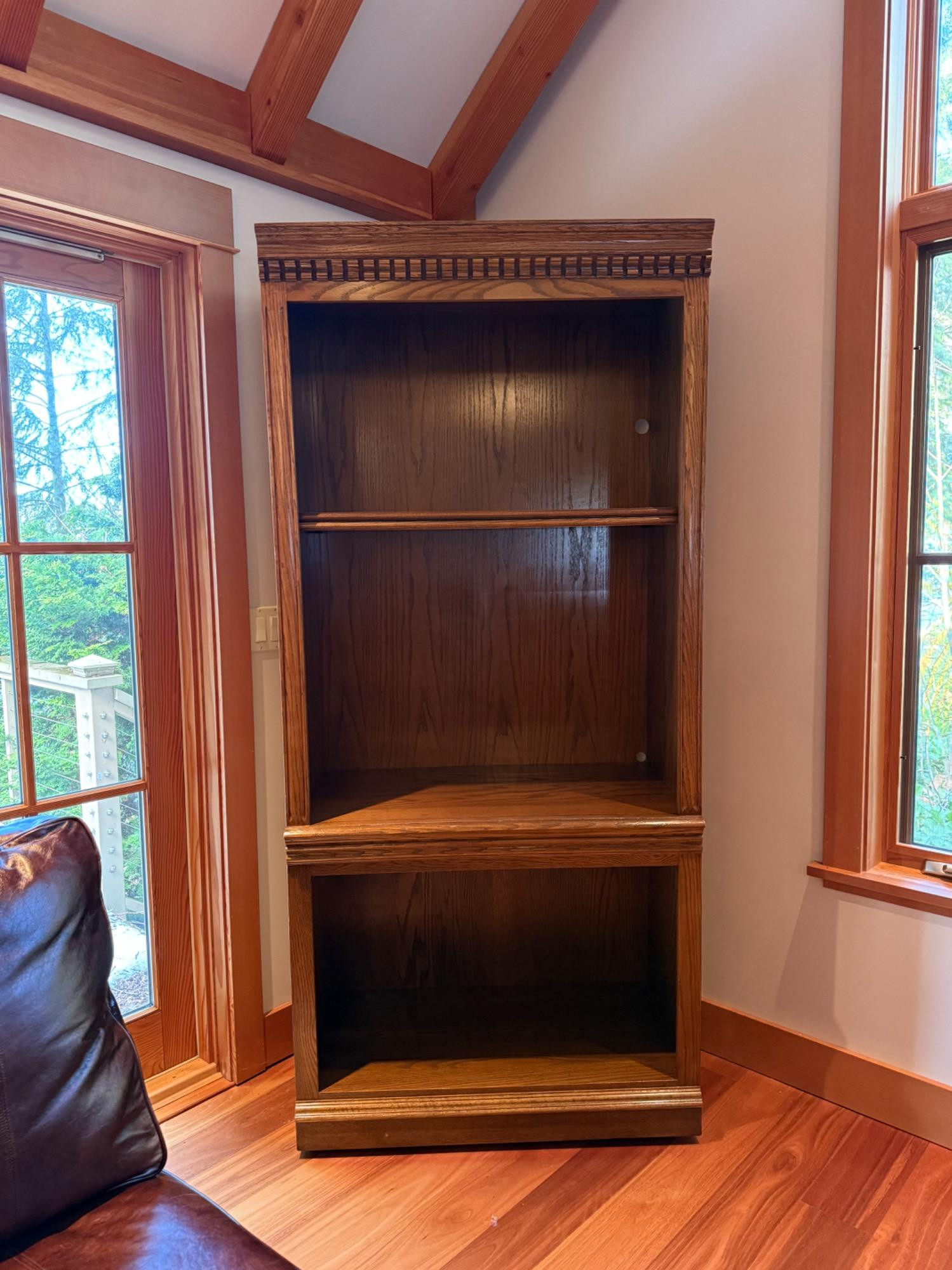 Classic Solid Wood Bookcase / Media Cabinet. This timeless solid wood bookcase/media cabinet is a perfect blend of functionality and style, ideal for organizing books, displaying décor, or housing media equipment. With fixed shelving, this sturdy unit ensures long-lasting durability while maintaining a classic, sophisticated look. Bidding on this lot is an agreement that: (1.) You will have at least 2 capable, able-bodied persons to lift and load at a minimum. (2.) You will bring a hand truck and/or any other tools needed to remove this item. If these steps are not followed your item will be forfeited and no refund given.