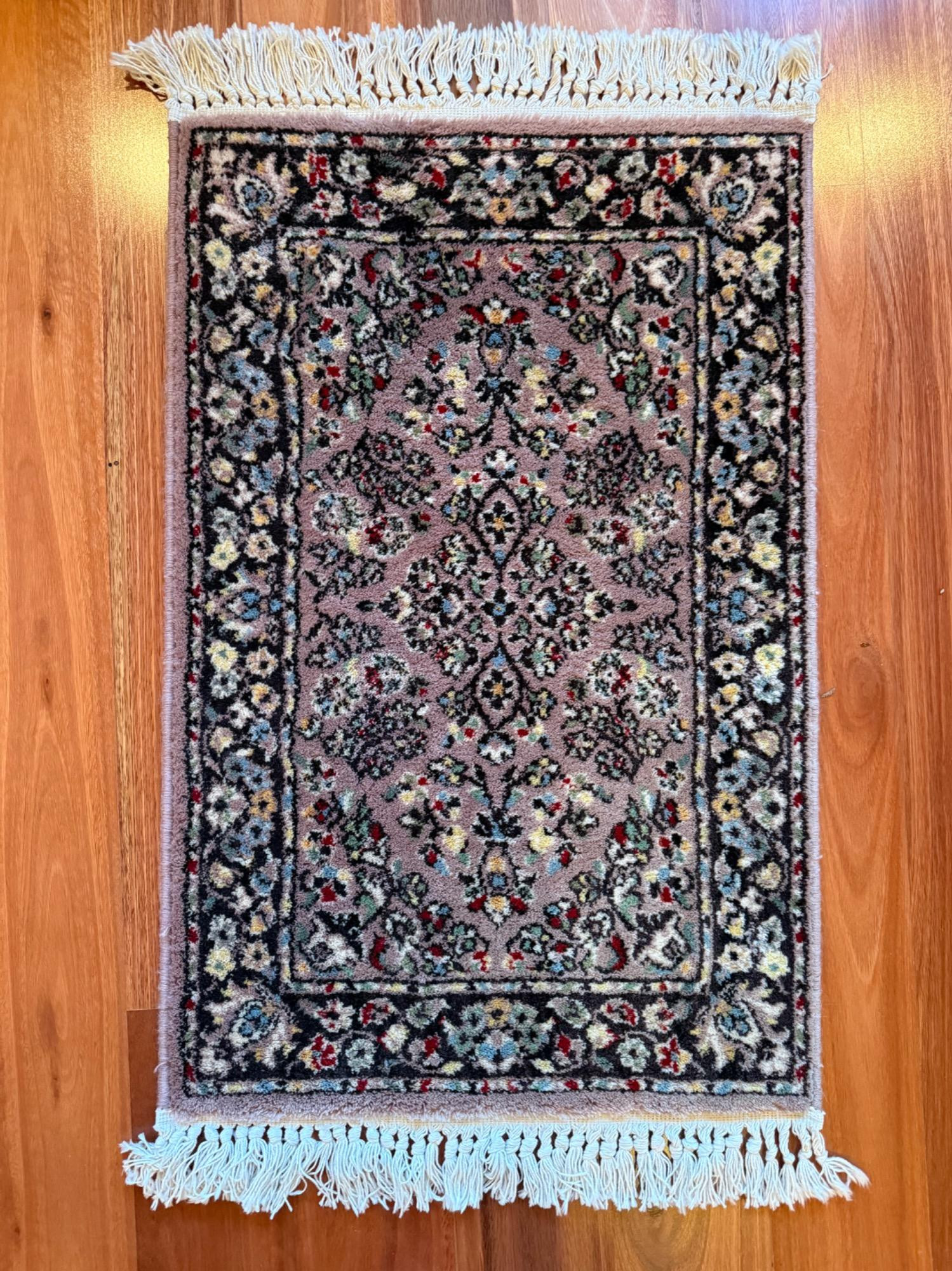 Lot # 162 - Belgian Sarouk Wool Rug – 24" x 42" – Wine & Arabesque Pattern