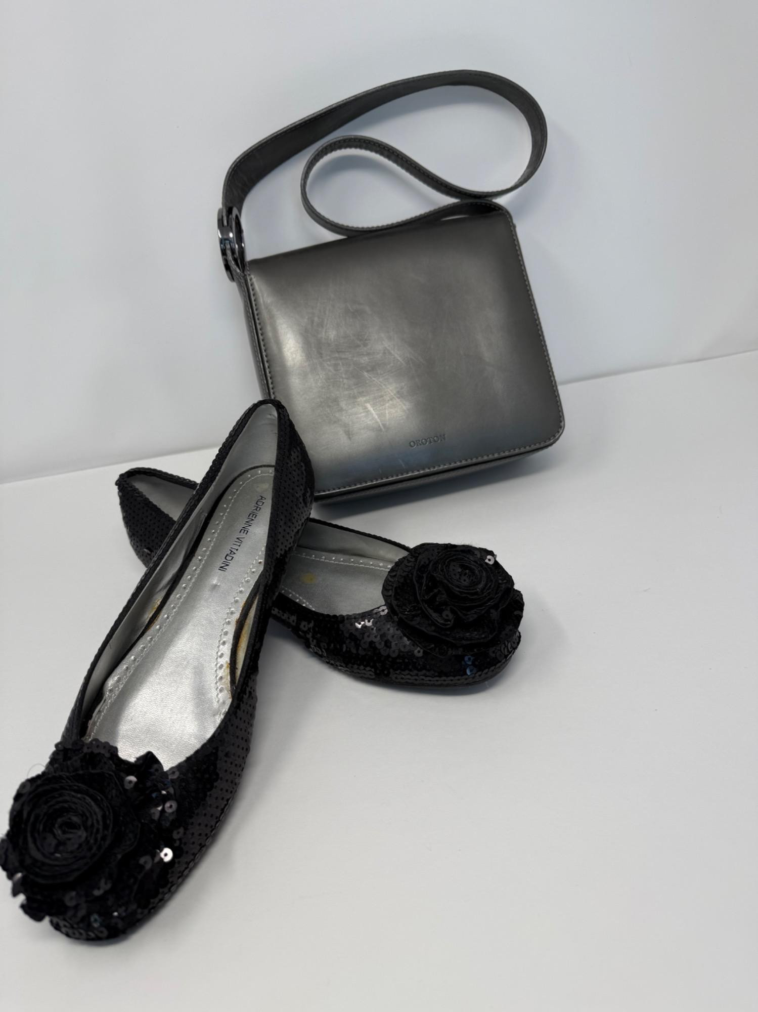 Oroton Leather Crossbody Bag & Adrienne Vittadini Sequin Flats. This chic set includes a timeless Oroton crossbody bag and a pair of stylish Adrienne Vittadini sequin ballet flats, making it perfect for any fashion-forward individual. Both items are well-crafted and offer a sophisticated, timeless appeal. Perfect for those who love designer accessories with a touch of elegance! Let me know if you’d like any refinements to the description.