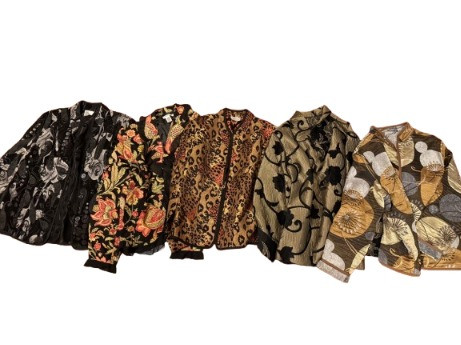 Jackets & Coats - Coldwater Creek, Molly & Max, The Travel Collection+ This stunning collection of women’s jackets and coats features pieces from renowned brands like Coldwater Creek, Molly & Max, and The Travel Collection. Each piece boasts intricate patterns, rich textures, and a variety of styles, from floral embroidery to elegant metallic and animal print designs. Perfect for layering or making a statement, these jackets offer timeless fashion and quality craftsmanship.