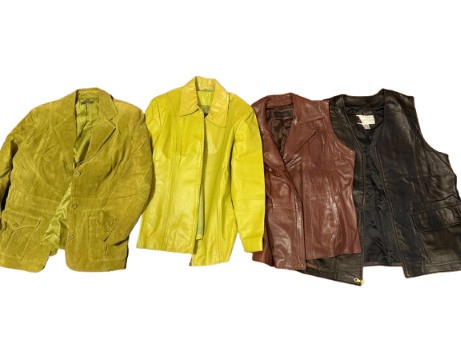 Leather & Suede Jackets – Elie Tahari, Worthington, Liz Claiborne + Elevate your wardrobe with this stylish collection of leather and suede jackets. Featuring brands like Elie Tahari, Worthington, E Wear, and Liz Claiborne, these coats bring a mix of classic and bold styles. From vibrant lime green to rich brown and timeless black, each piece adds a statement to any outfit. Whether you're looking for a structured blazer or a sleek vest, this set offers versatile options for any occasion.