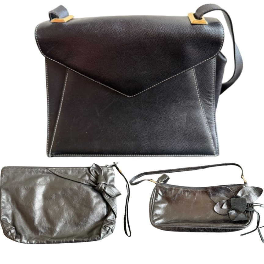 Designer Handbag Collection – Salvatore Ferragamo, Nordstrom & More. This is a collection of elegant vintage handbags, including a stunning Salvatore Ferragamo bag made in Italy with classic craftsmanship, a Nordstrom Italian-made bag with a sleek design, and a stylish black leather bag with a floral accent. These timeless pieces feature high-quality materials, gold-tone hardware, and sophisticated detailing, making them perfect for any occasion. Whether you're looking for a designer statement piece or a versatile everyday bag, this collection offers something special.