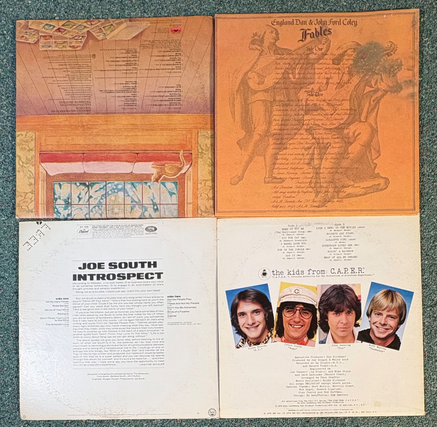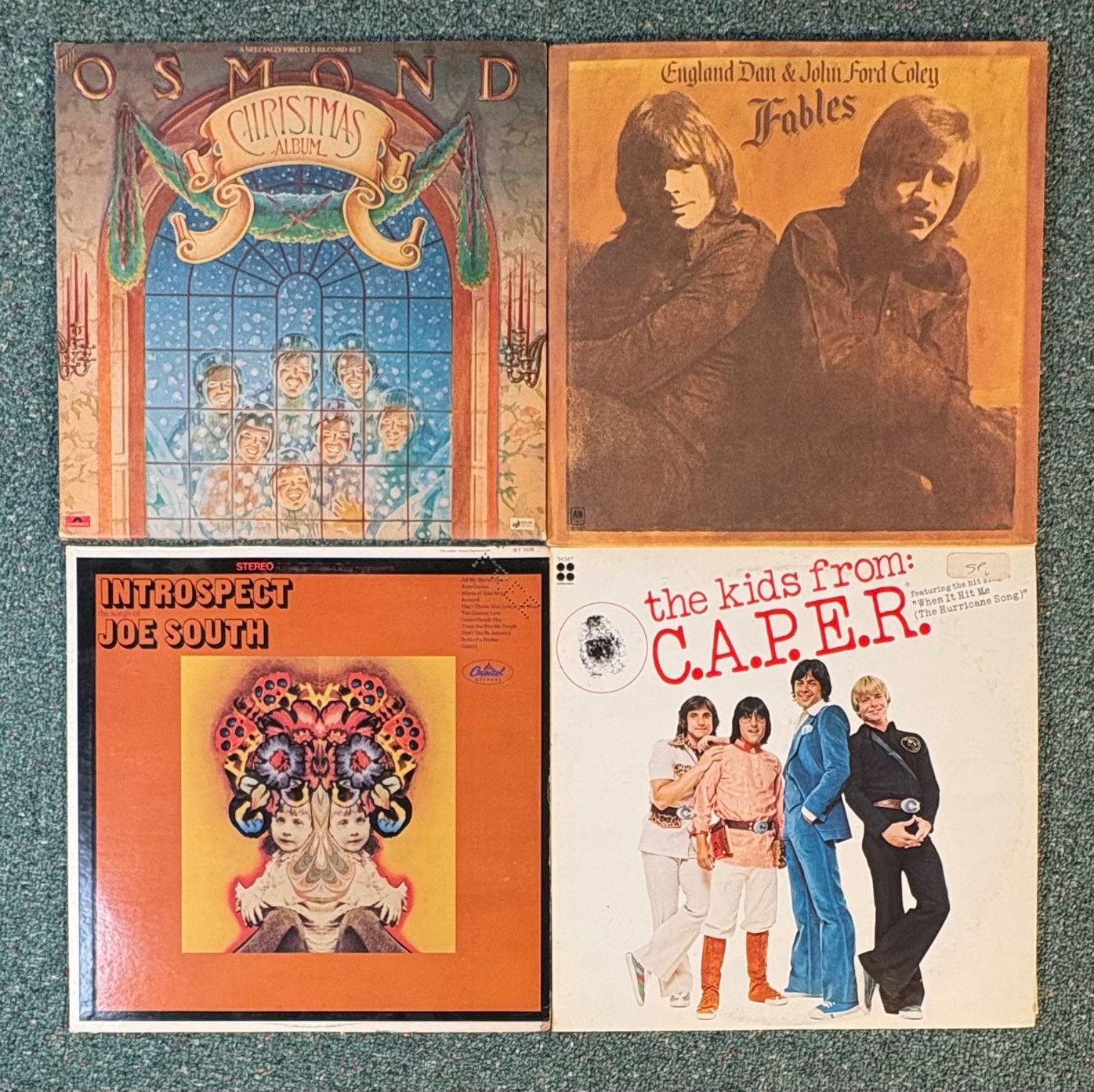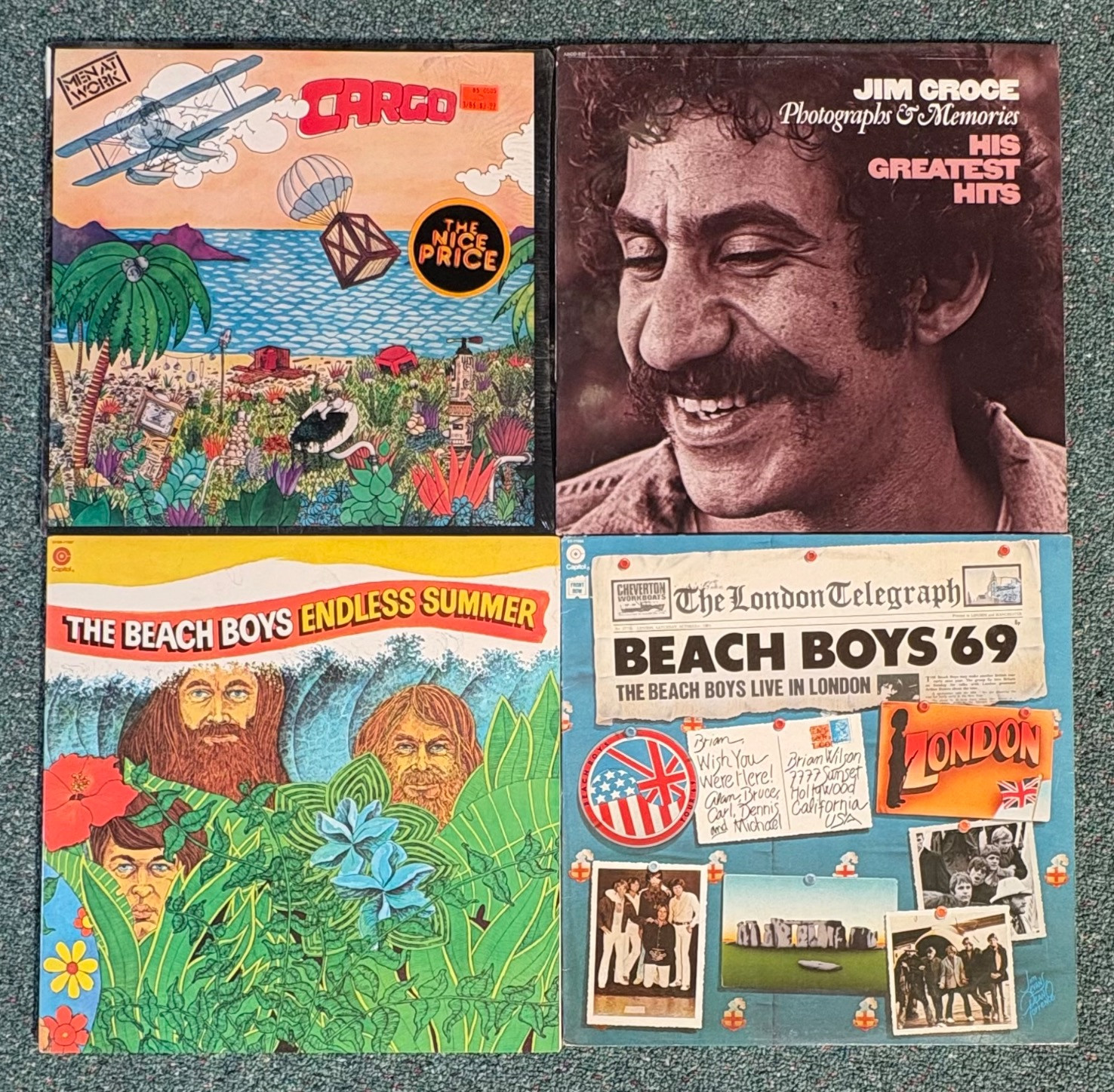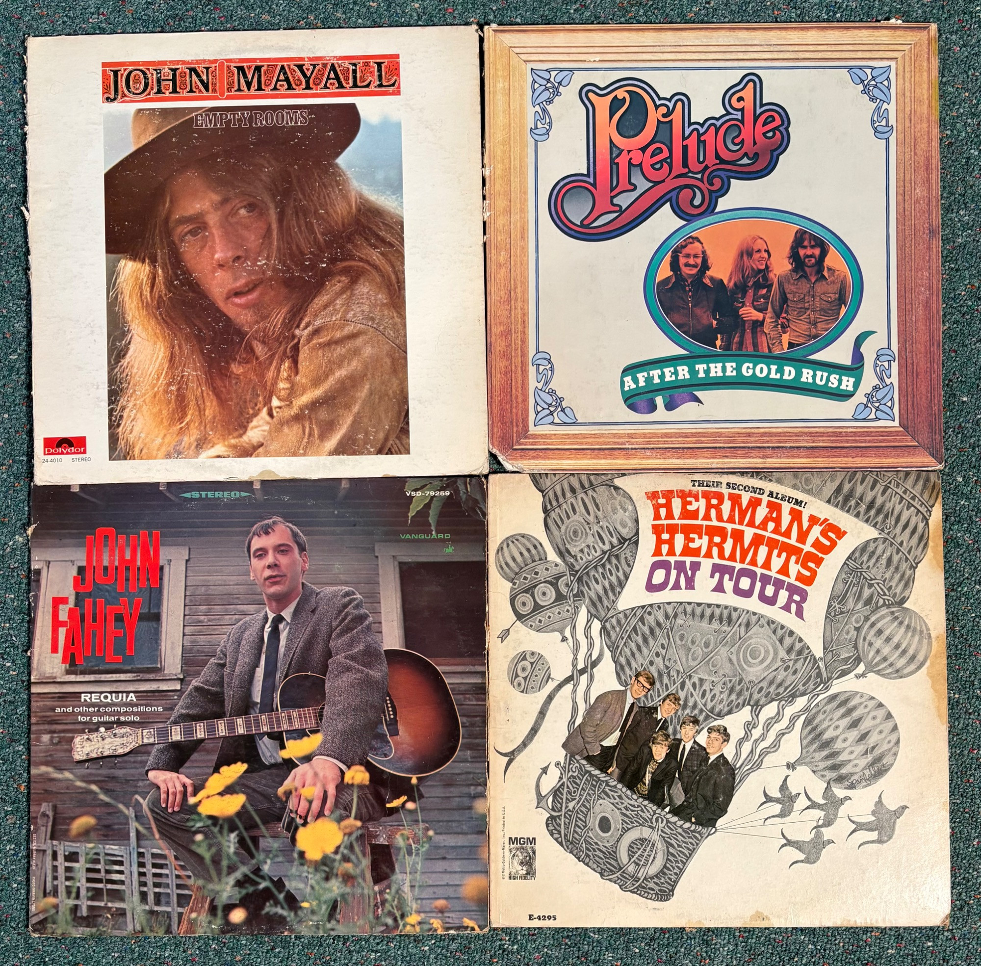 16 vintage vinyl LPs! Our client had eclectic taste and loved his albums - thus, most of these have been lovingly played over the years. We checked to make sure the correct album was in the correct cover and did a cursory glance for any egregious scratches. Some covers reflect heavy use and are worn/split in places/have names written on them. However, the majority are in good used shape. Artists/Bands in this lot include: The Beach Boys (2 albums) Prelude Herman’s Hermits John Mayall John Fahey Men At Work Jim Croce The Kids From C.A.P.E.R. Harvey Mandel Osmonds England Dan & John Ford Coley Joe South Barbra Streisand Simon & Garfunkel Country Joe & The Fish Note: Osmonds inner sleeve is missing