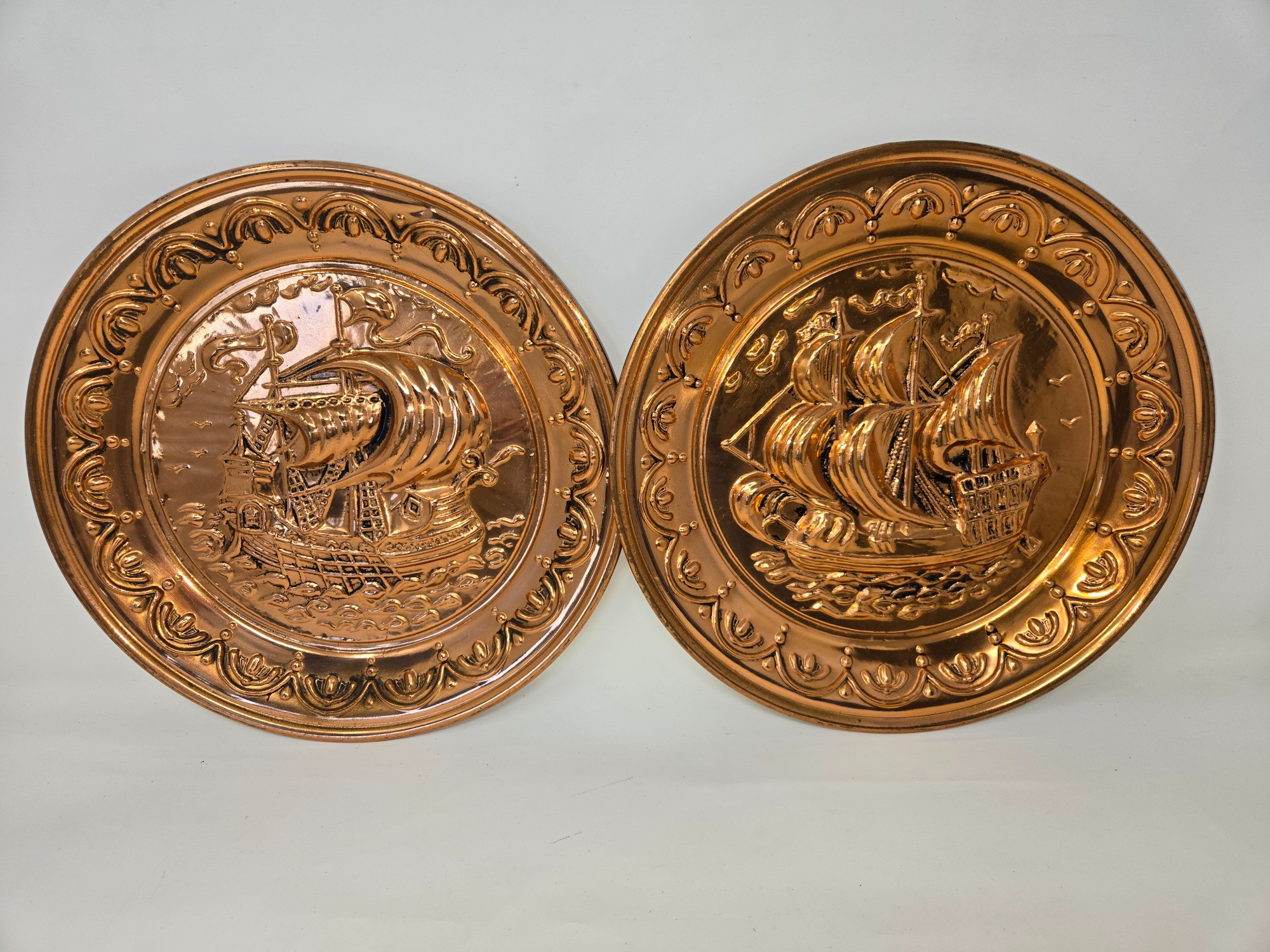 Lot # 45 - Copper Hand-embossed Sailing Ships, Possibly Viking Longboats