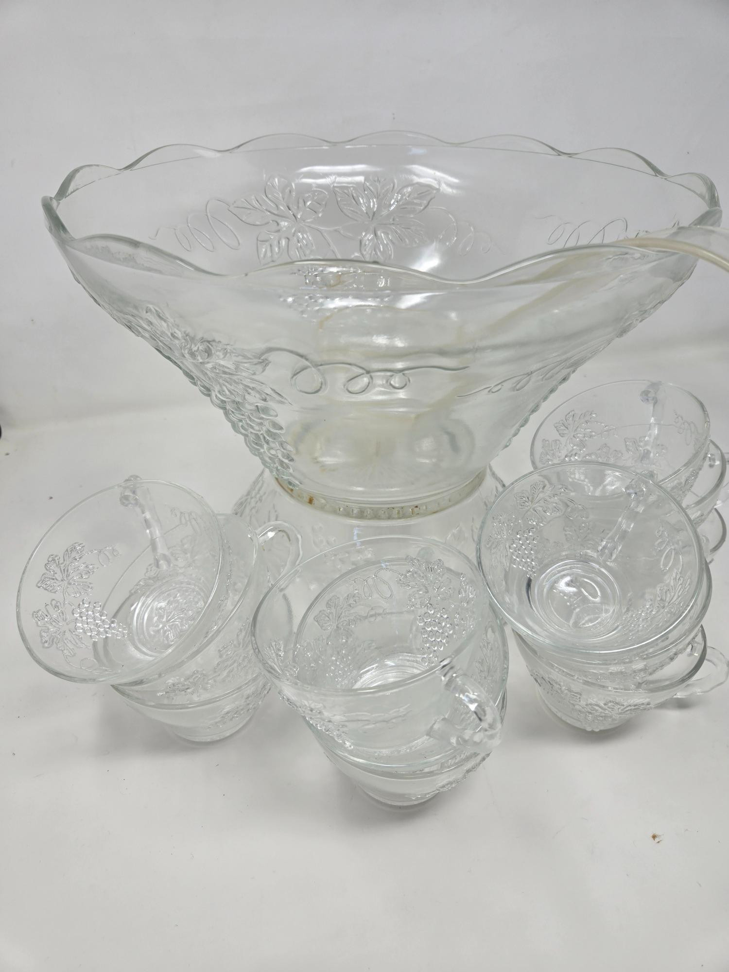 Lot # 10 - Vintage Punch Bowl Set, service for 12, Anchor Hocking Vintage Grape