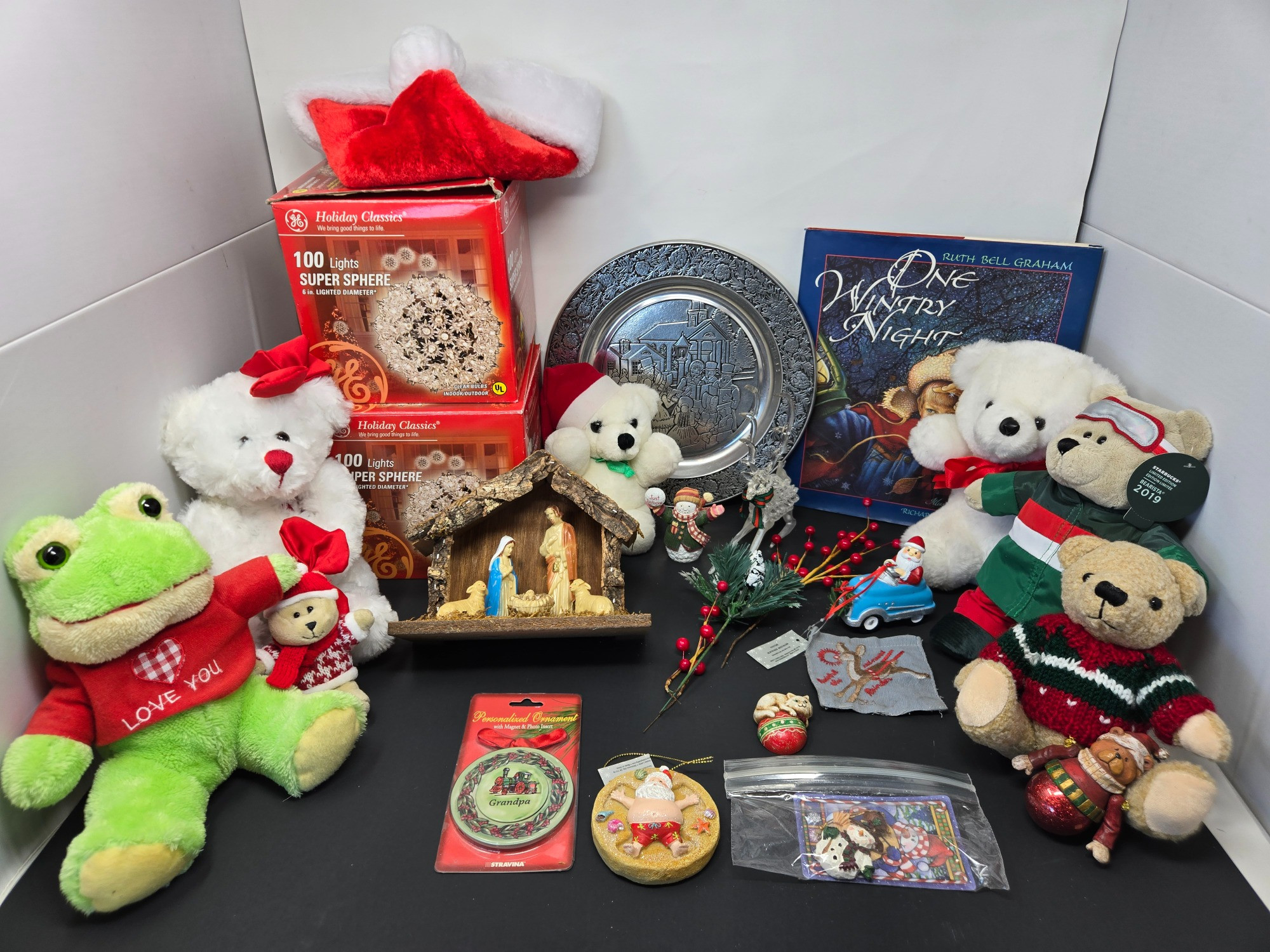 Lot # 16 - Christmas Ornaments, Wilton Armetale Pewter Plate, Stuffed Animals