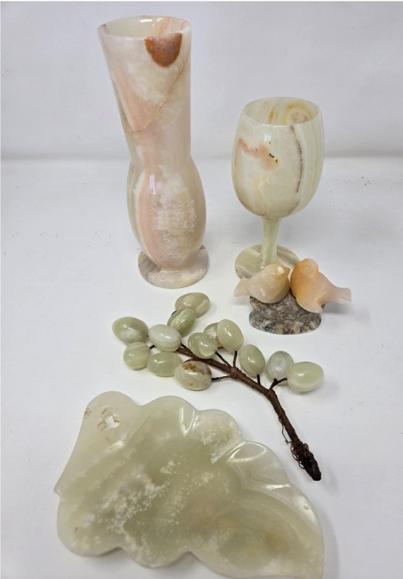 Lot # 18 - Marble Love Birds, Grapes Vase, Goblet & Tray