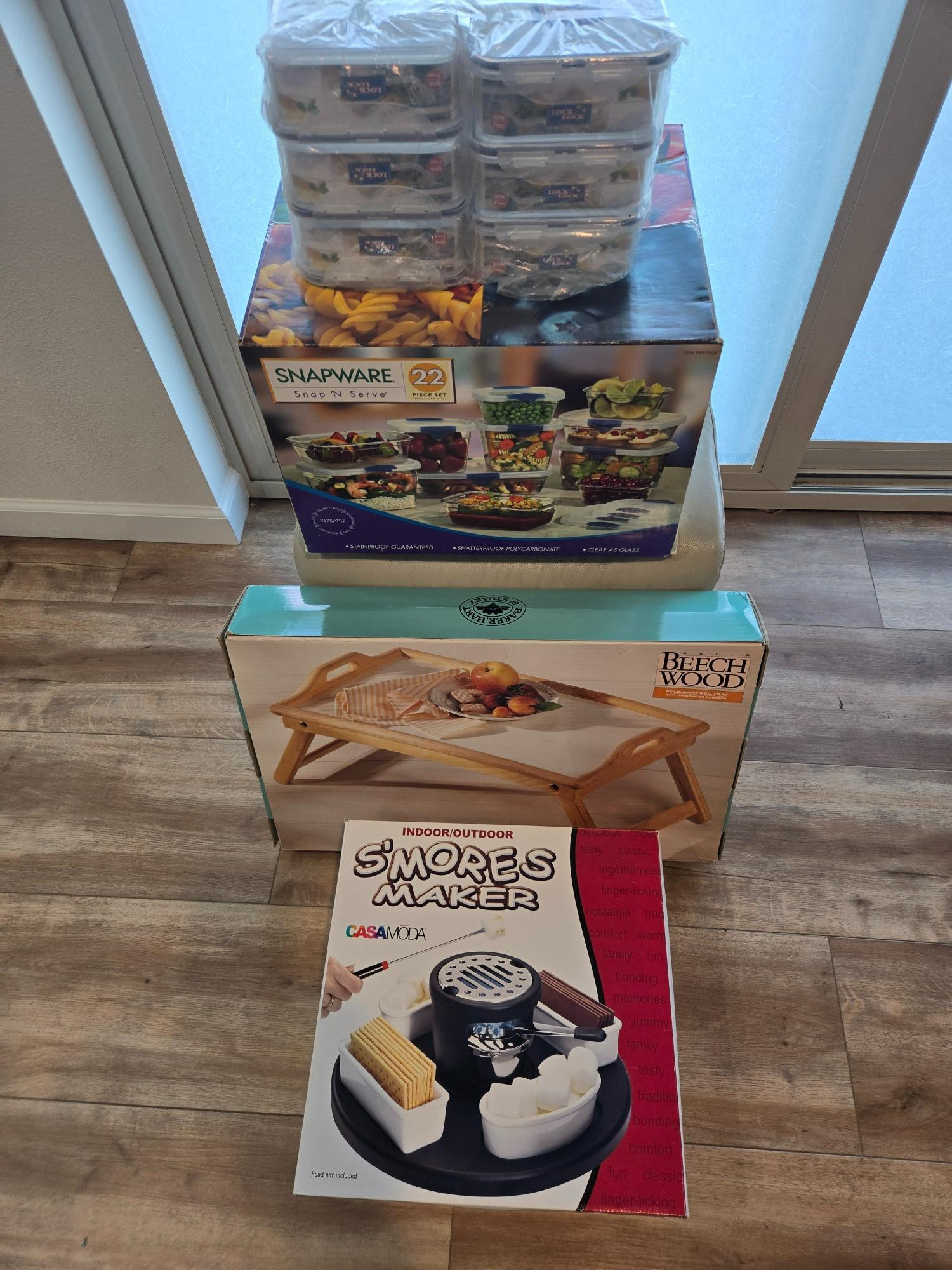 Lot # 23 - New!! S'more Maker, Beechwood Tray, Snapware & LockLock
