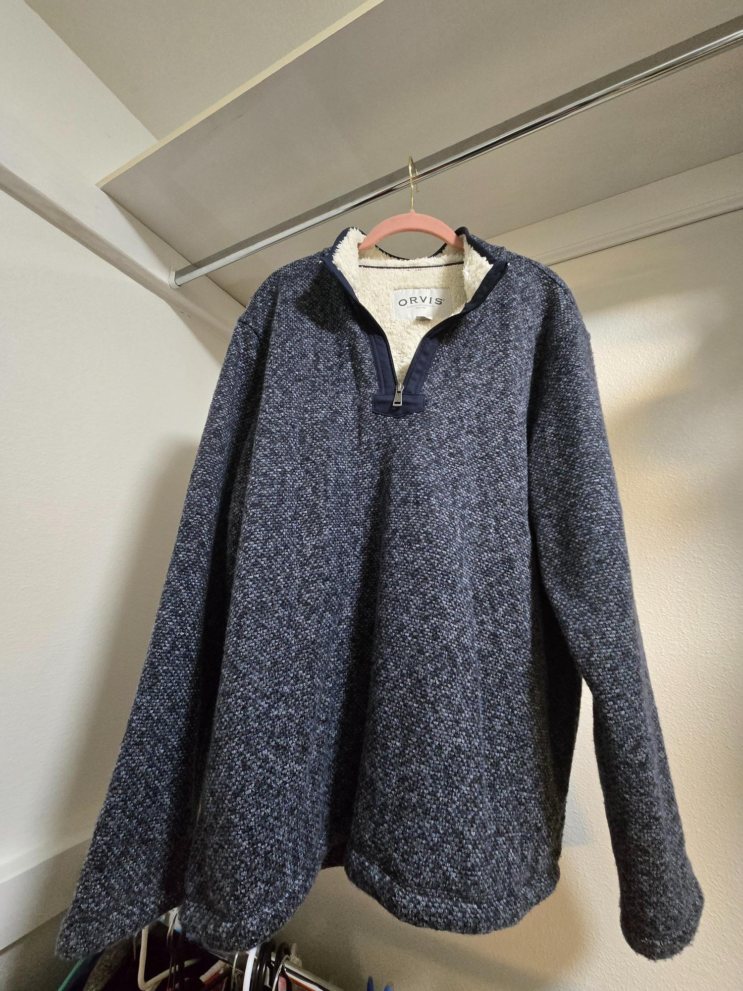 Lot # 59 - Men's Large, Navy, Orvis Sherpa Lined Sweater Pullover