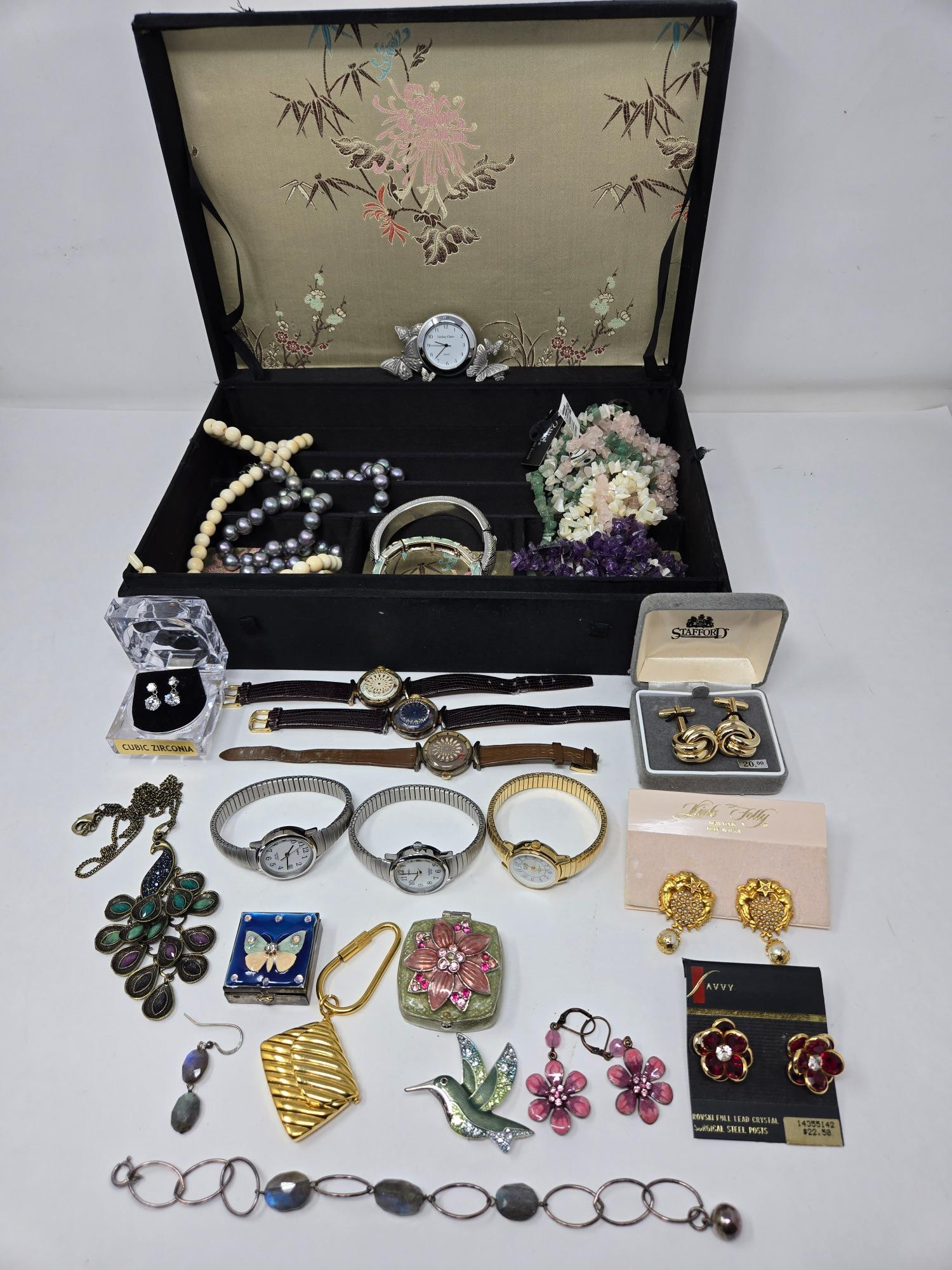Lot # 93 - Asian Inspired Jewelry Box Loaded with Costume Jewelry