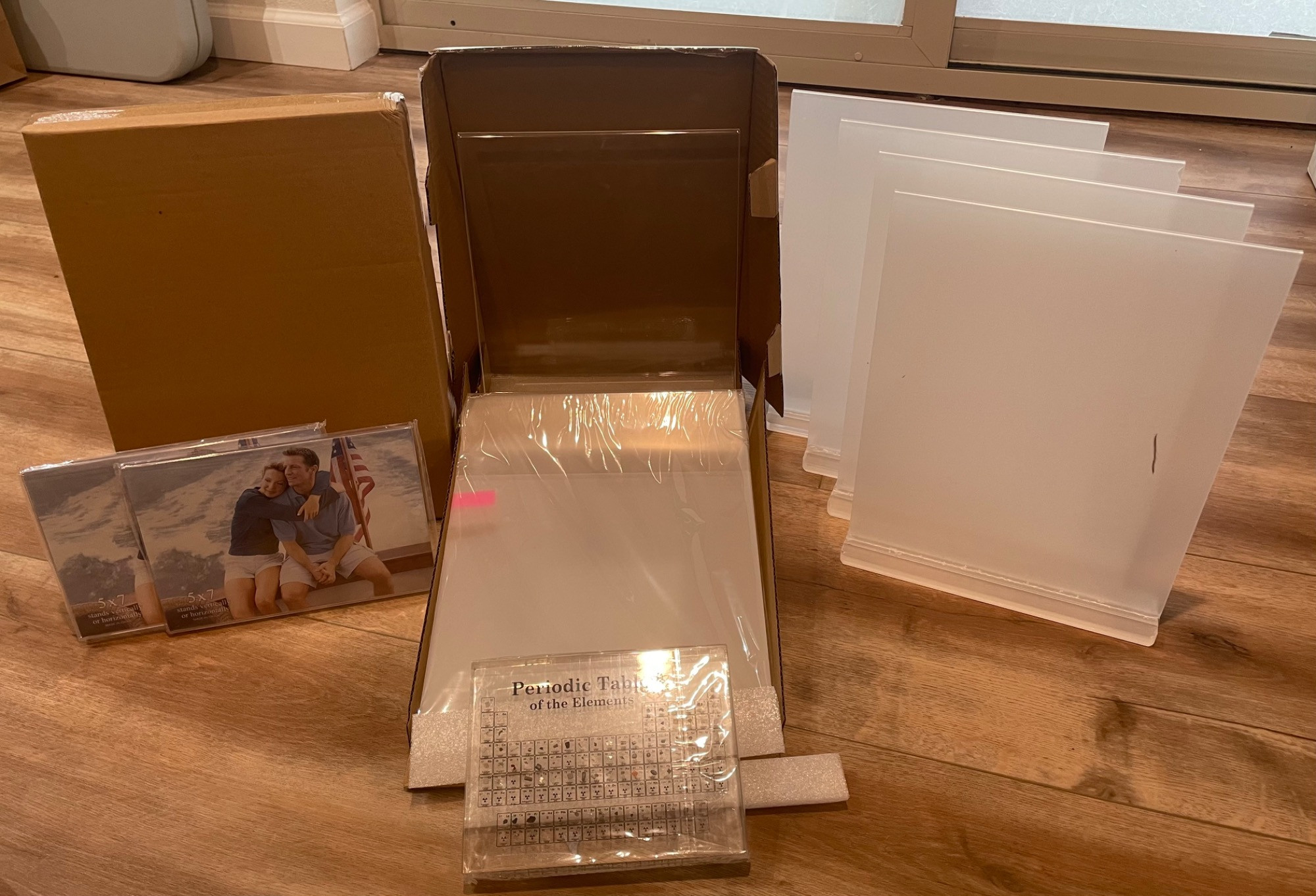 3 Vertical Acrylic Picture Stands 8 x 11" 7 Vertical Acrylic Stands w Slight slant 8.5 x 11" 2 Acrylic 5x7 Picture Stands