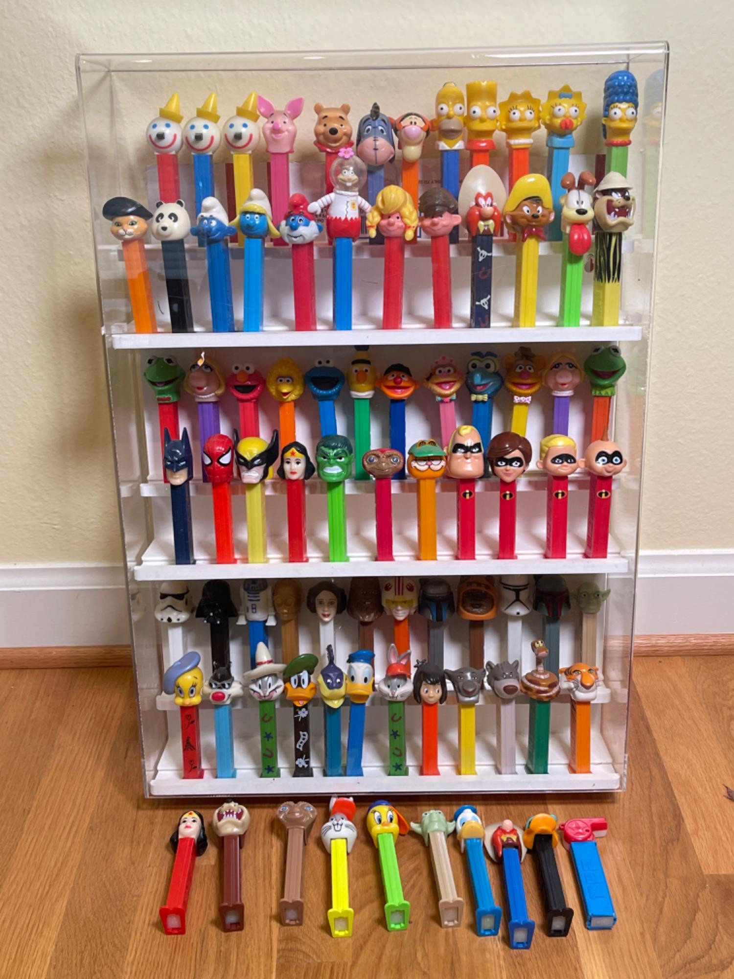 Large PEZ Dispenser Collection with Hand Made Display Case