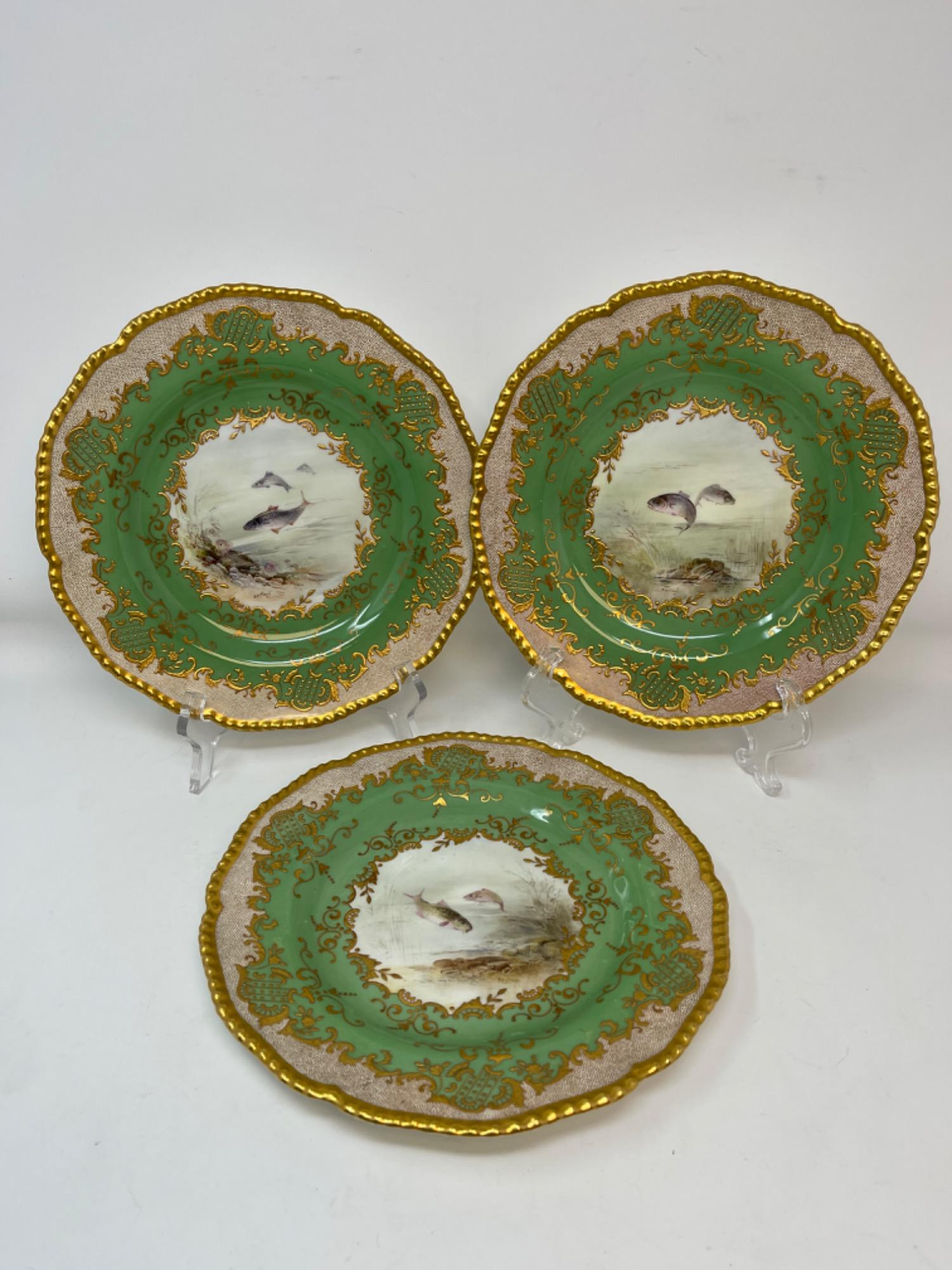 Lot # 133 - Three RARE Antique Coalport England Hand-Painted Fish Plates