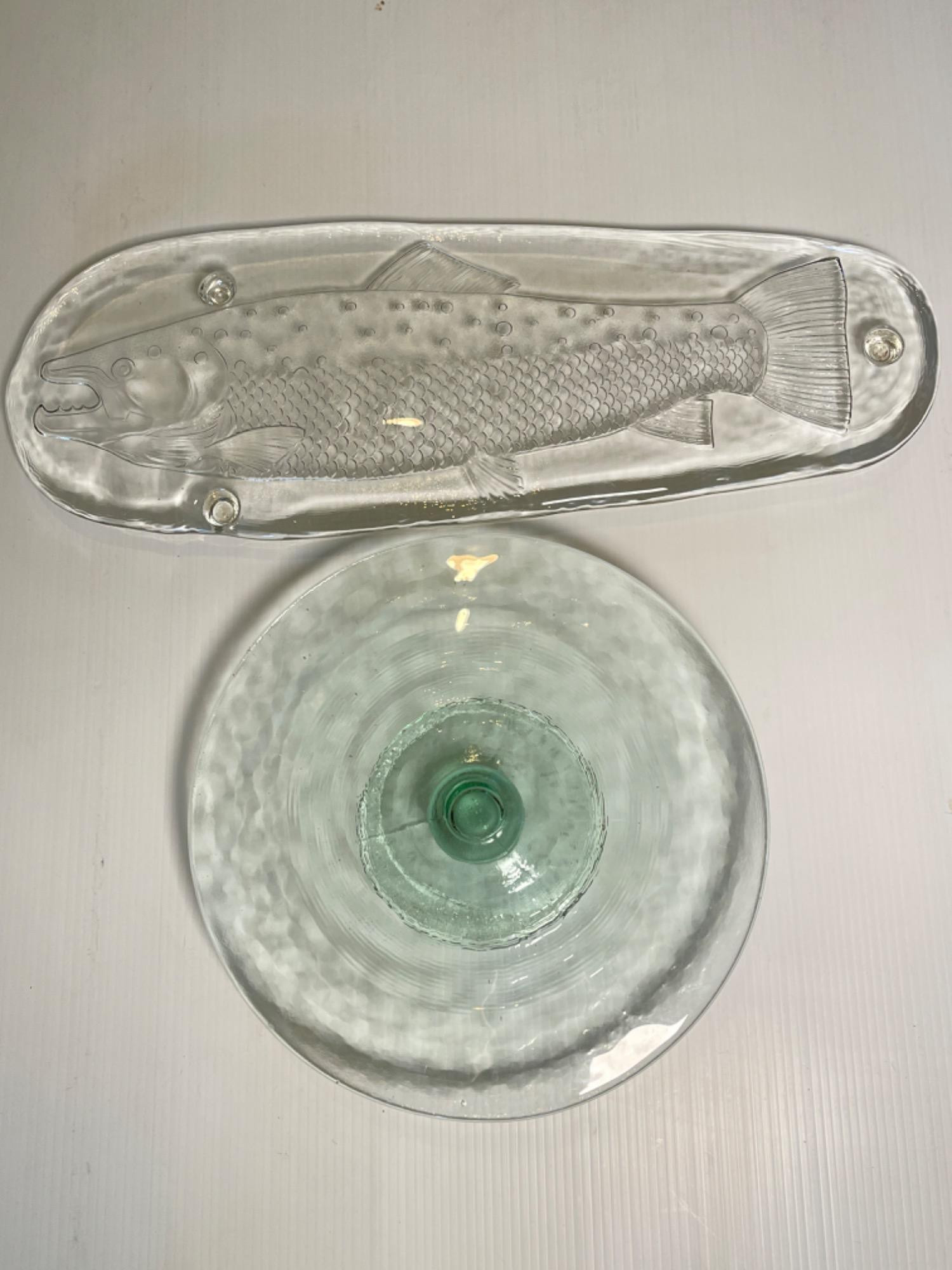 Lot # 173 - Thick Glass Clear Fish Platter and Green Cake Plate