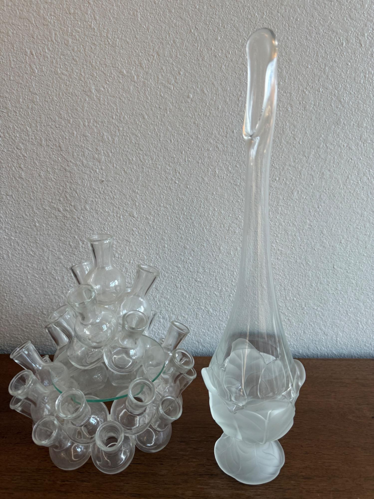 Lot # 16 - Glass Flower Frog & Swung Glass Vase – Unique Multi-Tube Design